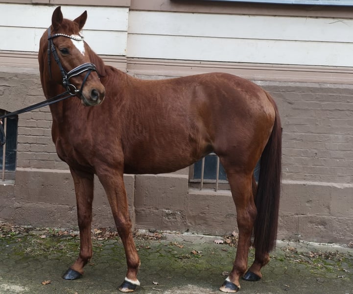 Winni is a very sweet, well-balanced mare with solid basic training and versatile potential. She has mostly been ridden in leisure riding so far and proves to be reliable, calm, and easy to handle. She is comfortable in dressage work, goes willingly into the terrain—both alone and in a group—and also shows awareness and motivation over jumps. With proper encouragement, she could certainly be successful in competition. Winni is a hardy, healthy horse that enjoys spending a lot of time outdoors. Currently, she stays in a box at night with daily turnout on the paddock; she has previously been kept in an open stall and on pasture. She is straightforward to handle, gets along well with other horses, and is confident when it comes to farrier work, loading, and daily routines. She has also participated in lessons with children and re-entrants, impressing with her patience and friendliness. Winni is a high-quality leisure horse that combines safety, riding enjoyment, and sporting potential—ideal for leisure riders or families seeking a reliable mount. With further training, I see her also succeeding in sport. More photos, videos, and glimpses into the daily life of our horses are available on Instagram: [maresi_lange]. Feel free to visit and get to know our four-legged friends a little better in advance. You can find additional photos, videos, and insights into our horses’ daily routines on my website MaresiLange.de or upon request. Please note that the horse’s description is based on subjective impressions and experiences and does not constitute a guarantee of qualities or characteristics. Trial riding is at your own risk. The sale is carried out on behalf of the owner. For viewing or trial riding, we reserve the right to charge a fee of €30, which will be deducted from the purchase price if the horse is bought.
