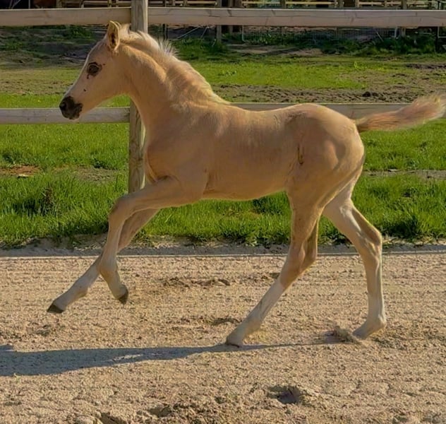 Veulen van Shu Fu uit een Quaside x Don Juan de Hus-merrie – geboren maart 2025 Dit uitzonderlijk typestarke veulen combineert de modernste dressuurgenen, krachtige bewegingstechniek en een betoverende uitstraling. Het presenteert zich nu al als een veelbelovende sport- of fokkerijkandidaat van topklasse. Afstamming die geen wensen onvervuld laat - Vader Shu Fu: een veelgeprezen rising star en ZEER INTERESSANTE dekhengst met moderne rij-eigenschappen, briljante mechaniek, ritme en natuurlijke verzameldheid. - Moederlijn Quaside x Don Juan de Hus: prestatiegericht, dynamisch en bekend om rijbaarheid, type en een hoog elastisch achterbeen. Eigenschappen - Beweging: bergop, energiek achterbeen, veel schoudervrijheid, altijd in natuurlijke zelfhouding. - Karakter: alert, helder van geest, mensgericht en in de omgang absoluut aangenaam. - Uiterlijk: modern, correct fundament, harmonieus gebouwd en edel in uitstraling. Belangrijk: Dit is geen noodverkoop en zeker geen koopje. De kwaliteit van dit veulen spreekt voor zich – alleen verkocht aan passende, ontwikkelende handen. Het veulen groeit op een natuurlijke manier in de kudde, kent de basis van het veulendiploma, halster en smid. Bezichtiging op afspraak. Meer video's & foto's op aanvraag.