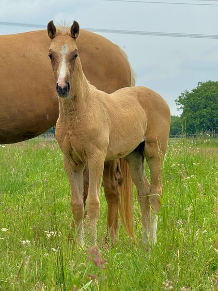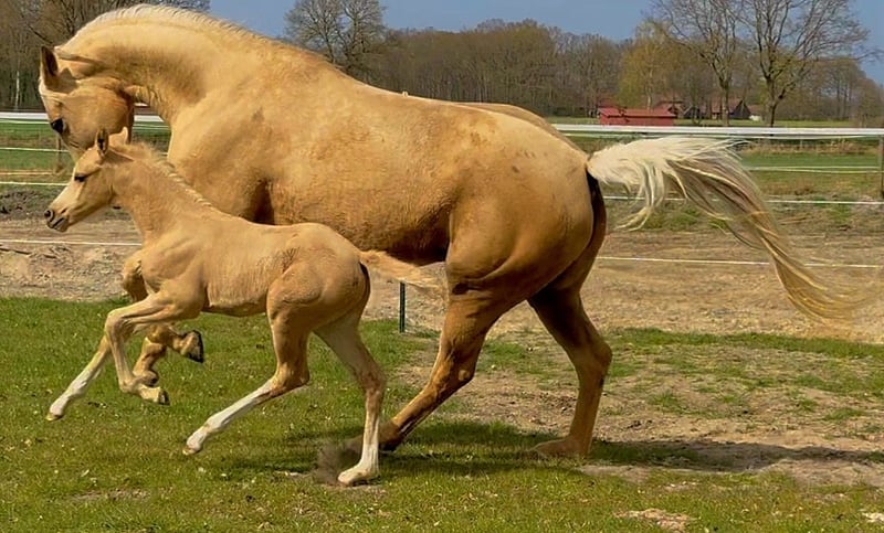 Filly by Shu Fu out of a Quaside x Don Juan de Hus mare – born March 2025 This exceptionally typey filly combines cutting-edge dressage genetics, powerful movement mechanics, and captivating charm. She already presents herself as a future top-class sport or breeding prospect. An outstanding pedigree that leaves nothing to be desired - Sire Shu Fu: celebrated rising star and highly interesting sire of modern riding qualities, with brilliant mechanics, rhythm, and natural self-carriage. - Dam line Quaside x Don Juan de Hus: performance-oriented, dynamic, and renowned for rideability, type, and a highly elastic hind leg. Qualities - Movement: uphill, energetic hind leg, ample shoulder freedom, always in natural self-carriage. - Character: alert, clear-minded, human-oriented, and absolutely pleasant in daily handling. - Conformation: modern, correct foundation, harmoniously built, and noble in expression. Important: This is not an emergency sale and definitely not a bargain. The quality of this foal speaks for itself – it will only be sold into suitable, nurturing hands. The foal is raised appropriately in a herd, familiar with foal basics, halter, and farrier. Viewing by appointment. More videos and photos available upon request.