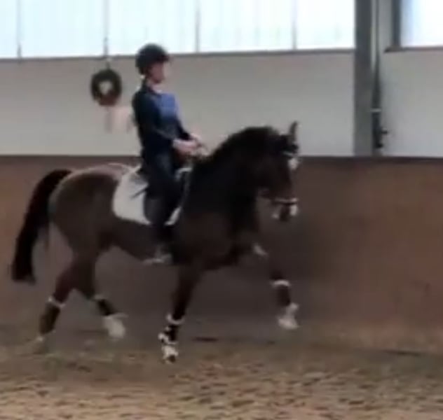 Schicker 9 jähriger Wallach ca.160 /161cm groß Lieb und verschmust im Umgang, absolut korrekt und gerade auf den Beinen. Wir haben ihn seid Fohlen an und er war noch nie lahm oder krank! Wenig gefördert, war dieses Jahr das erste Jahr auf Turnier und ist A Gelände gelaufen und A Dressur. Er springt alles, inklusive offenem Wasser etc. und ist im Gelände auch absolut mutig. Er hat viel Go und Drive und ist nicht für Reitanfänger geeignet. Kein Bocker, nur mit viel Bewegungsdrang ausgestattet. Er ist nicht glotzig, lässt sich problemlos Stollen reindrehen und ist ein sehr personenbezogenes Pferd Wir haben ihn jetzt auch mal an die Doppellonge gehängt im Schritt und Trab. Auf Grund seines ausdrucksstarken Trabs, seiner Kraft und seiner bergauf Bewegung, wäre er ggfl auch für den Fahrsport interessant.