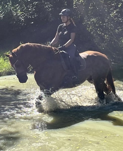 🐴 Bon Withro – Dressage Horse with an Exceptional Character and Sporting Quality We are offering the impressive dressage gelding Bon Withro, a horse that combines athletic performance with an outstanding temperament. An absolutely reliable partner for discerning riders who value quality, rideability, and future potential. Basic Data Name: Bon Withro Age: 10 years, gently and professionally backed at 4.5 years Height: approximately 16.1 hh Color: Chestnut Pedigree: Ben Kinsley × His Highness Pedigree & Bloodlines His sire, Ben Kinsley, is known for modern dressage horses with above-average movement quality, expression, and willingness to perform. His dam, His Highness, impresses with rideability, an excellent temperament, and her inheritance of reliability and strong character. Sporting Record - Successful in dressage competitions at A and L levels, with scores up to 7.9 - Winner at L level - M*-placed with scores up to 67%, achieving 2nd and 3rd place on the bit with scores up to 7.2 Temperament & Handling Bon Withro presents himself as a truly exceptional horse: - Extremely well-behaved, reliable, and fearless - Very easy to handle, even in daily interactions - Can be left alone in the stable without issues - Very social and compatible within the herd - Absolutely trailer- and load-trained, even when handled alone - Travel stress-free by trailer at any time - Routinely veterinary care in the last five years, including vaccinations Movement & Training - Elegant appearance with a sporty presence - Very good basic gaits with quality, rhythm, and expression - Always motivated, honest in work, and reliable in training Suitability A horse for ambitious amateurs and professionals with a view to further sporting development. Also ideally suited as a higher-level confidence-building partner for motivated young riders seeking a safe and willing partner. Health A veterinary certificate is available and can be provided upon request. 📍 Location: Hamminkeln, 46499 This extraordinary horse impresses with performance, character, and charisma. We look forward to your serious inquiry and are happy to provide further information, photos, or videos.