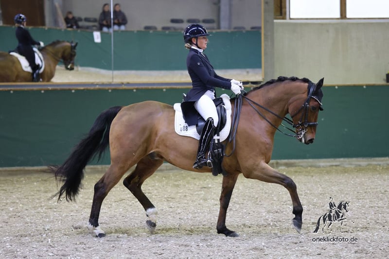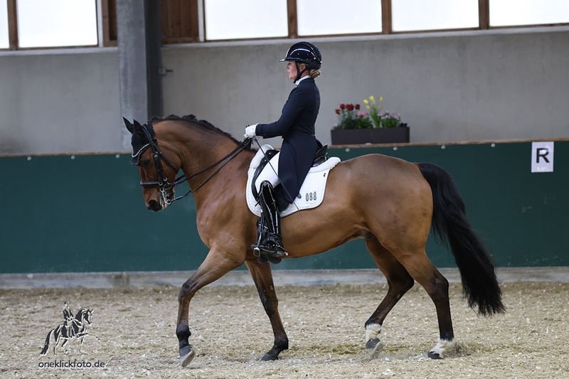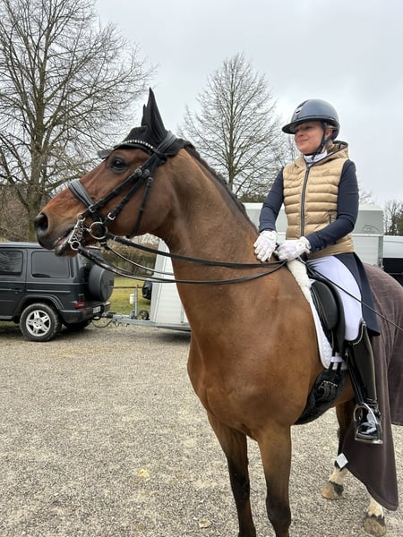 Feivi ist schon bei mir seitdem er 6 Monate alt ist. Ich habe ihn selber angeritten und bis zur Klasse S ausgebildet. Er ist ein absoluter Kumpeltyp, ausgestattet mit drei guten GGA, sehr verschmust und anhänglich, zu dem sehr schön zu reiten. Auf dem Turnier konnte er bereits M-Dressuren gewinnen und ist immer ein absolutes Verlasspferd. Auch Ausritte macht er sehr gerne und problemlos alleine. Da ich ihm zeitlich einfach nicht mehr gerecht werde, suche ich schweren Herzens für ihn ein neues 5* zu Hause. Ich könnte ihn mir gut als Pony-Umsteiger und Lehrpferd vorstellen. Hauptsache eine Familie, die ihn genauso zu schätzen weiß wie wir. Da er nicht gerade riesig ist, wäre ein großer Reiter nicht so passend. Auf Grund eines Befundes deutlich unter Wert. Platz vor Preis. Video und weitere Informationen gerne auf Anfrage.