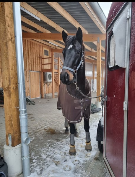 Cœur lourd, je cherche un nouveau foyer pour mon hongre Hannoverien de 10 ans, dans un box en pâturage avec accès à du foin 24/7. Il est totalement facile, courageux et un chef de troupe doux, un véritable « Labrador en taille cheval ». Aucune mauvaise habitude, très proche de l’humain et d’une grande gentillesse dans le contact. Il peut sortir seul ou en groupe en balade. Ferrure, vétérinaire ou transport en van ne posent aucun problème. Il a été formé en dressage jusqu’à la classe A, mais en raison de sa santé, il ne supporte actuellement que le pas et recherche donc une place en tant que compagnon à pied, limité dans ses capacités de monte. Plus adapté pour le sport de compétition ou le travail en dressage sur le carré ! Santé : - Vacciné régulièrement (y compris contre le virus du Nil occidental), déparasité - Présenté deux fois par an chez l’ostéopathe - Dentiste au moins une fois par an Fourbure il y a deux ans suite à un traitement médicamenteux – guérie, radiographies disponibles, continue à porter des fers, pâture quelques heures par jour. Opéré du genou – sans boiterie. Insuffisance de la valvule mitrale – pas de traitement, pas de cœur agrandi, contrôle annuel suffisant. Il peut se déplacer en pas, mais actuellement pas au trot ou au galop. En raison de son jeune âge, il n’est pas exclu qu’il puisse un jour être à nouveau monté tranquillement en balade en terrain varié dans toutes les allures. Je souhaite lui offrir un foyer aimant, qui lui apportera calme et beaucoup d’attention. Priorité au bon endroit que le prix ! Pour toute question, je suis à votre disposition.