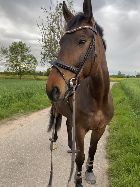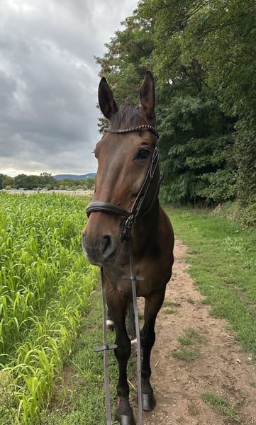 Zum Verkauf steht ein liebenswerter Hannoveraner-Wallach mit einem Stockmaß von ca. 175 cm. Er ist 11 Jahre alt und wurde ursprünglich als Springpferd gekauft. Es hat sich jedoch gezeigt, dass ihm das Springen keine Freude bereitet. Kleine Gymnastiksprünge und Cavalettiarbeit meistert er gerne und motiviert, für den Parcours ist er jedoch nicht zu begeistern. Dafür zeigt er seine wahren Stärken in anderen Bereichen: • Er geht brav, entspannt und zuverlässig ins Gelände, auch alleine • Er ist sehr kinderlieb und angenehm im Umgang • Er ist sehr menschenbezogen und stets freundlich Daneben ist er gesund, regelmäßig geimpft, entwurmt, dem Schmied und dem Zahnarzt vorgestellt. Derzeit lebt er in einem Stall mit Paddock und ganztägigem Koppelgang, was ihm sehr guttut. Eine artgerechte Haltung mit viel Weidezeit wünsche ich mir daher auch für seine Zukunft. Ich suche für ihn ein liebevolles Zuhause, in dem er als Freizeitpartner geschätzt wird und weiterhin vielseitige Arbeit genießen darf. Sein Wohl steht für mich an erster Stelle – daher wird er nur in fördernde und passende Hände abgegeben. Bei ernsthaftem Interesse freue ich mich über Ihre Nachricht. Hinweis: Probereiten ist nach Absprache möglich. Um Reittourismus zu vermeiden, wird eine Schutzgebühr von 30 € erhoben, die beim Kauf selbstverständlich verrechnet wird.