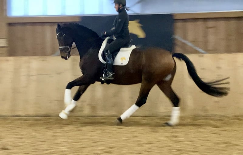 Sehr eleganter langbeiniger Wallach mit einem ganz lieben Charakter. Er war mit einem Mädchen A - Dressur platziert und wurde dann nicht weiter gefördert. Er ist im Moment auf L Niveau und bei weiterer Förderung ist da auch noch mehr drin. Er ist total lieb beim reiten und im Umgang, Er kennt Hufschmied, Anhängerfahren. Bei weiteren Fragen bitte einfach melden unter 0157 53625941