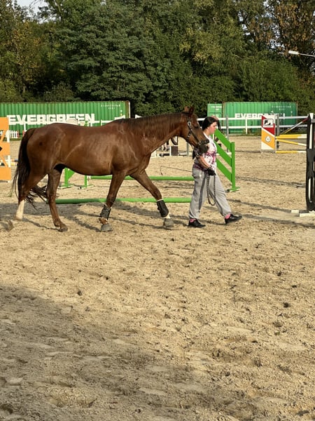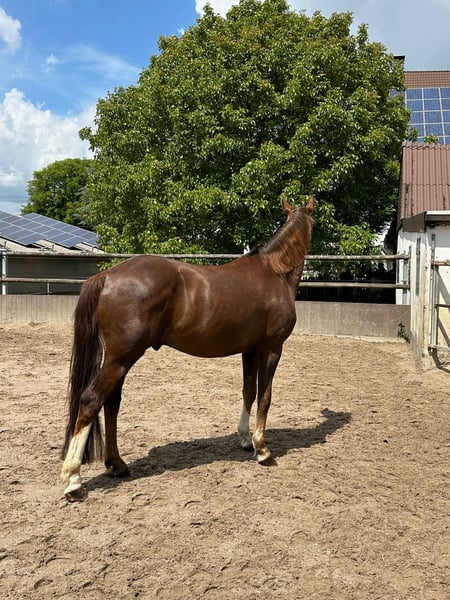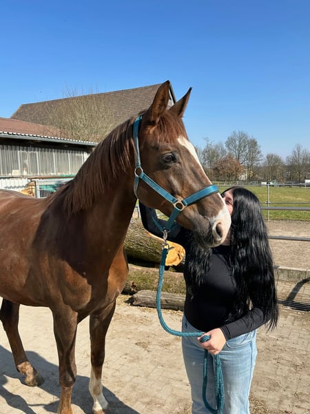 Eine passende Verkaufsanzeige für unseren Wallach Bobo zu verfassen, fällt mir absolut nicht leicht, ich versuche aber einfach mal die Situation bestmöglich darzustellen. Zunächst ein paar Daten: Bobo ist ein bildhübscher Dunkelfuchs, der im Jahr 2014 geboren wurde. Er stammt von Bodyguard und First Smile (einer Fidermarkstute) ab. Sein Stockmaß liegt bei 1,74 m. Aufgrund einer leichten Fehlstellung in den Vorderbeinen ist er vorne beschlagen und wurde/wird regelmäßig dem Schmied vorgestellt. Ansonsten ist er gesund und voll reitbar. Er wurde regelmäßig entwurmt und geimpft. Dressurmäßig ist er aktuell auf A-Niveau ausgebildet. Er verfügt über drei sehr schöne GGA und scheint durchaus Potential für mehr zu haben. Das Springen scheint ihm zu liegen und auch Spaß zu machen, so wie wir es im Freispringen beobachten konnten. Hier wurde er aber bisher scheinbar nicht weiter gefördert. Kommen wir zu dem Teil, der mir schwerer fällt: Bobo lebt seit einem Jahr bei uns. Wir (wir sind ein Mutter-Tochter-Gespann) haben ihn als unser erstes, eigenes Pferd gekauft. Wir sind beide keine Anfänger, jedoch reiten wir auf unterschiedlichem Niveau, so dass die Voraussetzung war, dass er als gelassenes Freizeitpferd auch von schwächeren Reitern zu händeln ist. Dies wurde uns beim Kauf, zusammen mit einigen anderen Dingen zugesichert. Das Probereiten vor Ort verlief auch problemlos. Bei uns zu Hause mussten wir dann leider sehr schnell feststellen, dass das bei ihm aber tatsächlich nicht der Normalfall ist. Wie bereits o. g. ist er dressurmäßig auf A-Niveau ausgebildet. Da er jedoch unsicher ist, benötigt er einen absolut sicheren und erfahrenen Reiter, der das Fingerspitzengefühl besitzt, festzustellen, wann ihm eine Situation zu „gruselig“ ist. Kann man die Anzeichen nicht rechtzeitig deuten, zeigt er seine Unsicherheit unter Umständen dadurch, dass er losschießt. Steigen und Buckeln sind ihm jedoch fremd. Insgesamt ist festzustellen, dass Bobo ein relativ dünnes Nervenkostüm besitzt. Er lässt sich schnell verunsichern und braucht auch in diesen Situationen eine konsequente und erfahrene Hand, die ihm Sicherheit vermittelt. Dieser Situation sind wir reiterlich einfach nicht gewachsen und auch nicht in der Lage, ihm an dieser Stelle weiterzuhelfen. Er ist Menschen gegenüber sehr aufgeschlossen und freundlich. Er möchte dem Menschen nie etwas Böses und genießt es sehr, Aufmerksamkeit zu bekommen. Mit Pferden kommt er sehr gut zurecht, egal ob Stute oder Wallach. In der Herde ist er eher rangniedrig. Am wohlsten fühlt er sich jedoch, wenn seine Artgenossen in Sichtweite sind. Eigentlich wollten wir vom Kauf zurücktreten und haben daher ein langwieriges Beweisverfahren von fast einem Jahr geführt. Es liegt nun ein umfangreiches gerichtliches Gutachten vor, welches bei echtem Kaufinteresse natürlich auch eingesehen werden kann. Das Gutachten kam jedoch der Verkäuferin zugute, so dass wir uns nun nach einem guten zu Hause für Bobo umsehen müssen, da wir ihn definitiv nicht behalten möchten. Er wurde die letzten Monate bei uns nicht geritten, sondern ausschließlich vom Boden aus gearbeitet. Körperlich und konditionell ist er trotzdem in einem Zustand, der ein Probereiten ermöglichen würde. Natürlich muss er grundsätzlich wieder neu angeschoben werden. Aktuell wird er wieder an die Arbeit unterm Sattel gewöhnt und von einer jungen Frau geritten. Bobo ist ohrenscheu und hat aurales Plaque, was spezielles Halftern und Trensen erfordert. Probereiten nur bei entsprechender Qualifikation und auf eigene Gefahr. Bobo ist ausdrücklich kein Anfänger- und kein Kinderpferd!!! Trotz aller Umstände haben wir ihn natürlich ins Herz geschlossen, so dass wir uns ein liebevolles Für-immer-zu-Hause für ihn wünschen, damit er nicht zum Wanderpokal wird. Weitere Infos gerne auf Anfrage. Auch in einem persönlichen Gespräch oder Telefonat. Schriftlich kann man vieles einfach nicht so rüberbringen. Videos vorhanden. Platz vor Preis!