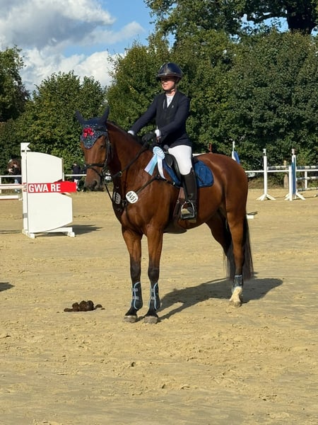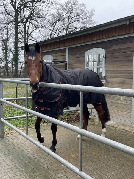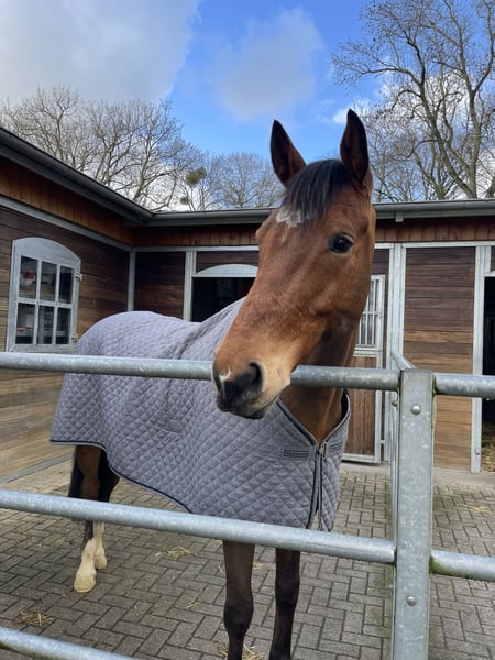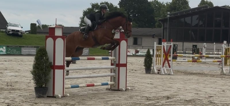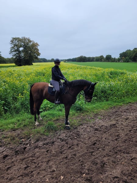 Schweren Herzens geben wir unseren 13-jährigen Wallach ab, der sich seit seinem fünften Lebensjahr in unserem Besitz befindet. Er wurde größtenteils von einer jungen Amateurreiterin ausgebildet und auf Turnieren bis M*-Springen vorgestellt, wobei er Platzierungen bis zur Klasse L erreichen konnte. Sein Herz schlägt für den Springsport. Er geht mit viel Motivation in den Parcours und ist stets fair zum Reiter, was ihn zu einem guten Lehrpferd macht. In der Dressur zeigt er drei solide Grundgangarten und beherrscht Lektionen bis zur Klasse M. Er wurde gelegentlich in A- und L-Dressuren vorgestellt und konnte auch hier die ein oder andere Platzierung in der Klasse A erreichen. In der täglichen Arbeit ist er sehr unkompliziert und macht viel Freude beim Reiten. Im letzten Jahr war er gemeinsam mit mir das erste Mal im Gelände unterwegs, wo er sich ebenfalls sehr brav und mutig in der Gruppe zeigte. Der ein oder andere Baumstamm stellte dabei kein Problem für ihn dar. Allgemein ist er ein sehr braves und erfahrenes Pferd, das mit viel Herz und Freude bei der Arbeit ist. Er freut sich über seine Freunde auf dem Paddock oder der Wiese, ist verspielt und wird auch gerne gekrault. Auf dem Turnier ist er ebenfalls super unkompliziert im Umgang und hat keine Probleme mit vollen Abreiteplätzen oder einem Traktor, der neben ihm den Boden abzieht. Wir geben ihn ab, da ich es neben dem Studium zeitlich leider nicht mehr schaffe, den Reitsport weiterzuführen. Wir hoffen, dass er ein tolles Zuhause findet, in dem er geliebt wird und sein schönes Leben weiter genießen kann. Er war in all den Jahren bei uns immer gesund und zeigt keinerlei Unarten. Für Videos und weitere Fragen können Sie sich gerne melden.