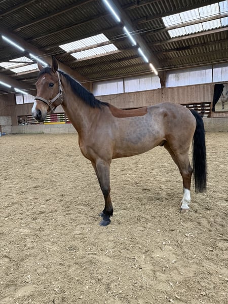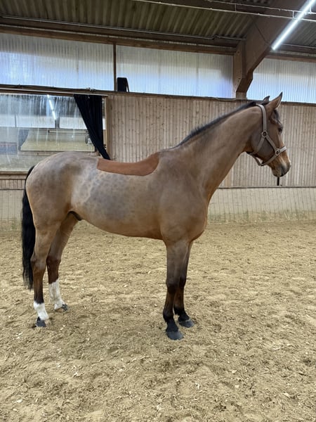 Zum Verkauf steht ein 12,5-jähriger Hannoveraner Wallach aus dem Springsport. Er wird im Juni 13 Jahre alt, gezogen aus Perigueux x Ludwig von Bayern, mit einem geschätzten Stockmaß von 1,73m. Er ist in seiner Springkarriere unter anderem Bundeschampionat gelaufen, international gelaufen und bis S* vorgestellt worden. Zuletzt hat er Azubis den Springsport gelehrt. Er ist seit November 2025 in meinem Besitz und wird freizeitmäßig Dressur geritten. Da ich selbst nicht Springe, wurde er hier lediglich mal im Beritt bis L-Niveau gesprungen und zeigte hieran immernoch große Freude! Er bringt ein ruhiges, kopfklares Wesen mit sich mit einem natürlichen Go! Trotzdem ist er nichts für Anfänger oder unsichere Reiter, da er guckig ist und dadurch eine liebevolle, ruhige Hand braucht. Aus dem Grund gebe ich ihn auch leider wieder in liebevolle Hände ab! Ich bin reiterlich nicht gut genug für ihn und kann ihm nicht die Ruhe vermitteln, die er braucht. Bei mir wird er aktuell geritten, longiert und an der Hand ans Gelände gewöhnt. Geritten bin ich ihn im Gelände noch nicht. Eine aktuelle große AKU von Ende Oktober 2025 liegt vor, inklusive 18-Standard Röntgen & Rücken. Er hat von klein auf eine Fußfehlstellung vorne rechts, dieser Huf steht zehenweit. Auf den Röntgenbildern sieht man mehrere kleinkolbige Canales sesamoidales (s.Röntgenleitfaden Nr. 2.1.a), welche laut Tierarzt durch seine Fehlstellung und Alter bedingt physiologisch ist. Zusammenfassend konnte bei der AKU keine Anzeichen für eine Gesundheitsstörung gefunden werden! Selbstverständlich kann auf eigene Kosten eine erneute AKU beauftragt werden. Er ist aktuell 4-fach beschlagen, durch seine Fehlstellung muss er laut Tierarzt vorne auch beschlagen bleiben. Er ist regelmäßig entwurmt und geimpft, aktuell auch der Chiro vorgestellt. Selbstverständlich ist er Schmiede- und Verladefromm! Zähne wurden im November 2025 gemacht. Ein gerade erst angepasster Dressursattel (12/25) und diverses Zubehör (Decken, etc.) kann bei Bedarf gerne miterworben werden. KEIN Verkauf an Händler und Reitschulen! Ich wünsche mir für ihn ein liebevolles Zuhause, wo er ankommen kann! Ich verkaufe ihn als Freizeitpferd für pferdeerfahrene und sichere Reiter, die einen tollen Partner suchen! 12.500€ VB Privatverkauf