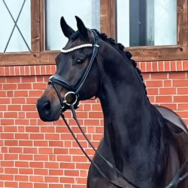 Äußerst ansprechend im Look ist Bugatti: Sein schön geprägter Kopf und die gut bemuskelte Halsung machen ihn zusammen mit dem kompakten und zugleich formschönen Körper zu einem Hingucker im Stall und unter dem Sattel. Er ist im täglichen Training aufmerksam und lässt sich ohne viel Aufwand sowohl in lockeren Bewegungsabläufen reiten als auch in die ausdrucksstarke Präsentation wechseln. Die Lektionen bis zur Klasse S hat sein ständiger Reiter Jan-Dirk Gießelmann dem 14-jährigen Bugatti schon vor geraumer Zeit beigebracht, und so platzierte sich das Paar bis zu diesem Niveau. Der letzte Turnierstart liegt gut fünf Jahre zurück, da die Konzentration des Familienbetriebs Gießelmann immer intensiver auf das Segment der jüngeren Pferde ausgerichtet ist. Daher ist der Zeitpunkt gekommen, dass Bugatti als Schoolmaster in Zukunft einen neuen Reiter begleitet. Die dazugehörige Abgeklärtheit im täglichen Umgang im Stall, sowohl in ruhiger Umgebung als auch bei hoher Betriebsamkeit, rundet seine Eignung positiv ab. Sportname: Bugatti 46 Sporterfolge: RPF: 1/1; 2/4 DRE (Dressur) Klasse M1 (Dre M*): 1/w Klasse M2 (Dre M**): 1/5; 1/w Klasse S1 (Dre S*): 1/3 DPF (Dressurpferdeprüfung) Klasse A (Dpf A): 1/1; 1/5 Klasse L (Dpf L): 1/1; 2/2; 1/3; 2/4; 2/w Klasse M (Dpf M): 1/2 1. Generation Sportpferde Dressur: Quantino 6 v. Quaterback (DRE: M* mit Kevin Riha). Auktionspferde: v. Secret - Rubin-R v. Secret (VA 2025); Vitali 27 v. Vivaldi (FoVA 2017: 38.000 €); Spooky v. Sandro Hit (FoVA 2016); Bailey v. Bretton Woods (VA 2018). Bes. Prämientöchter: HannPrA Freiheit v. Fürstenball. 2. Generation Sportpferde Fahren: Bugatti 52 v. Wolkentanz (Fahren: int. S mit Axel Olin,Nationenpreis Fahren -Vierspänner- -international- 2018). Auktionspferde: Clavigo 16 v. Caprimond (VA 2003). Bes. Prämientöchter: StPr Romantica v. Rubin-Royal. 3. Generation Sportpferde Dressur: Eskamino K v. Estobar NRW (DRE: Grand Prix mit Sina Leuthäußer); Whisper 156 v. Wolkentanz (DRE: Grand Prix mit Isabell Werth,Dressurprüfung Kl. S*** - Grand Prix de Dressage 2010,Dressurprüfung Kl. S*** - Grand Prix de Dressage 2009); Wynona 19 v. Weltmeyer (DRE: S* mit Elisa Tiemann); Sambesi 70 v. Spörcken (DRE: M** mit Lukas Blatzheim); Fabricio 25 v. Fidertanz (DRE: M** mit Lisa Treubrodt). Aufbauprüfungen Dressur: Labadia 2 v. Londontime (DRE: M mit Heinz Croonenbroek); Lennie Loomis v. Livaldon (DRE: L). Auktionspferde: von Conteur v. Conteur (VA 2006); StPr Sunshine K/Savannah 8 v. Sao Paulo (VA 1997); Hallelujah/Halleluja v. Hill Hawk (VA 1995). Bes. Prämientöchter: StPr Leony v. Londonderry. 4. Generation Sportpferde Dressur: Bella Unique v. Bonifatius (DRE: S** mit Katrin Bettenworth); Arosa-A**p-/Arosa 33 v. Rubinstein I (DRE: S** mit Oudewortel,Taco); Empire B v. Einstand (DRE: S** mit Schulze,Michael,HM 1984); Weltino 15 v. Welt Fürst (DRE: S* mit Maj-Britt Wessel); Quadrigo 7 v. Quattro B (DRE: M* mit Nike Josefine Driesen); Silbertau 3 v. Silberschmied (DRE: M* mit Sarah Beck); Rendite/Rendite 7 v. Riccione (DRE: M* mit Franziska Stettner). Sportpferde Springen: nicht gekört/Qinghai v. Quidam de Revel (SPR: int. 1,60 m mit Guido Jun. Klatte,Springprüfung Kl. S -Großer Preis**- 145cm -international- 2022,Springprüfung Kl. S -Großer Preis***- -international- 2022,Springprüfung Kl. S -Großer Preis**- 145cm -international- 2022,Springprüfung Kl. S -Großer Preis**- 145cm -international- 2021,Springprüfung Kl. S -Großer Preis***- -international- 2021,Deutsche Meisterschaft der Springreiter -Wertung- 2021,Springprüfung Kl. S -Großer Preis****- -international- 2021,Springprüfung Kl. S -Großer Preis***- -international- 2021,Springprüfung Kl. S -Großer Preis**- 145cm -international- 2021,Springprüfung Kl. S -Großer Preis**- 145cm -international- 2021,Springprüfung Kl. S -Großer Preis**- 145cm -international- 2020,Nationenpreis Springen Kl.S*** -international- 2020,Springprüfung Kl. S -Großer Preis***- -international- 2020,Nationenpreis Springen Kl.S*** -international- 2020,Springprüfung Kl. S -Großer Preis**- 145cm -international- 2020,Springprüfung Kl. S -Großer Preis***- -international- 2020,Springprüfung Kl. S -Großer Preis****- -international- 2019,Springprüfung Kl. S -Großer Preis***- -international- 2018,Springprüfung Kl. S -Großer Preis***- -international- 2018,Deutsche Meisterschaft der Springreiter -Wertung- 2018,Springprüfung Kl. S -Großer Preis***- -international- 2018,Weltcup-Finale -international- 2017,Springprüfung Kl. S -Großer Preis*****- -international- 2017,Weltcup-Qualifikation Springprfg Kl.S**** -international- 2017,Springprüfung Kl. S -Großer Preis*****- -international- 2017,Weltcup-Qualifikation Springprfg Kl.S**** -international- 2016,Weltcup-Qualifikation Springprfg Kl.S**** -international- 2016,Springprüfung Kl. S -Großer Preis***- -international- 2016,Europameisterschaft der Springreiter JR -Mannsch.- 2016,Europameisterschaft der Springreiter -JR- 2016,Nationenpreis Springen Junge Reiter -international- 2016,Weltcup-Qualifikation Springprfg Kl.S**** -international- 2016,Deutsche Meisterschaft Junge Reiter Springen 2015,Europameisterschaft der Springreiter -JR- 2015,Europameisterschaft der Springreiter JR -Mannsch.- 2015,Nationenpreis Springen Junge Reiter -international- 2015,Nationenpreis Springen Junge Reiter -international- 2015,Springprüfung Kl. S -Großer Preis**- 145cm -international- 2014); Meddalist v. Pius (SPR: int. 1,45 m mit Lotta Strömbeck); Madera/Alexis 219 v. Acolydor (SPR: 1,40 m mit Niclas Aromaa); Ma Belle F v. Montender (SPR: 1,45 m mit Marie-Theres Fischer); Gerry van Boven v. Grey Top (SPR: 1,40 m mit Andreas Barth); Mon Amie M/Mon Amie 86 v. Cacun (SPR: 1,30 m mit Nadja Schmittlein); StPr Marleen/Marleen 20 v. Quidams Rubin (SPR: 1,30 m mit Jörg Schaffner); Cobra 11 v. Cordalme (SPR: M mit Jochen Zeh); Davidoff/Davidoff 104 v. Delphi (SPR: M mit Holz,Thomas); Andiamo 26 v. Acapulco (SPR: M mit Vatter,Carsten). Auf