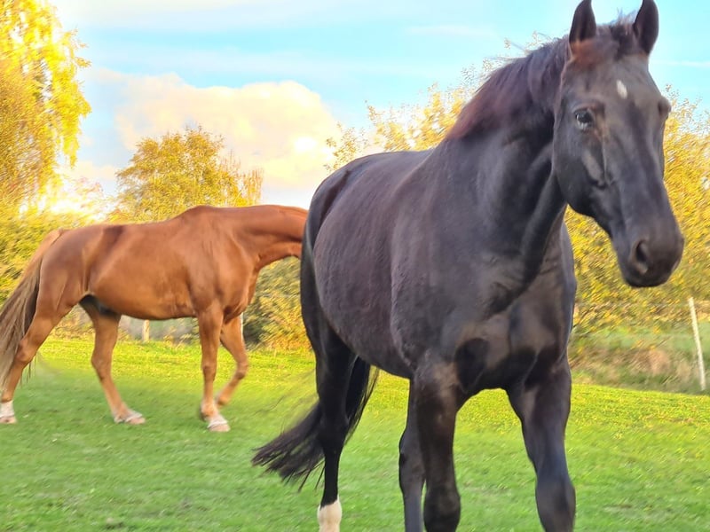 Ich gebe meinen 15 jährigen Hannoveraner Wallach aus Zeitgründen ab. Ich werden ihm einfach nicht gerecht. Zwei Pferde sind doch leider eins zu viel. Wir sind ihn freizeitmässig geritten. Egal ob allein oder in der Gruppe liebt er Ausritte. Aber auch in der Dressurarbeit macht er sehr viel Spass und ist immer bei der Sache. In der Dressur ist er gut ausgebildet und beherrscht einige Lektionen Seine jugendliche Reitbeteiligung konnte alles allein mit ihm machen. Auch springen kann er, wurde aber nicht weiter gefördert. Zur Abwechslung hat er daran aber auch Spass. Er ist ehr ranghoch, steht bei uns in einer gemischten Herde. Hufschmied und Verladen ist alles kein Problem. Er läuft Barhuf. Spritzen mag er leider gar nicht. Unser Tierarzt hat es aber immer gut hin bekommen. Ich wünsche mir für ihn einen Platz mit viel Auslauf. Aktuell steht er in Offenstallhaltung. Es ist kein Notverkauf. Wir suchen wirklich einen schönen Endplatz für ihn. Es gilt aber Platz vor Preis wenn alles stimmt.