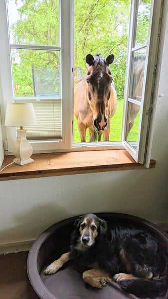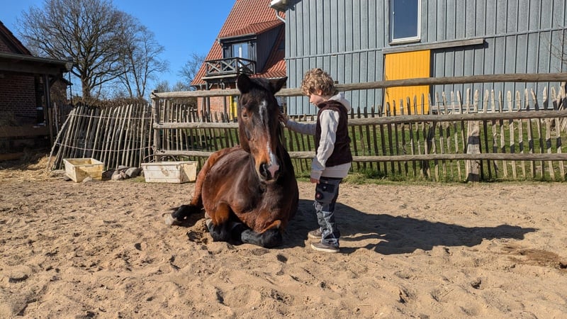 Ich suche für meinen Hannoveraner Wallach den passenden Best-Endplatz ausschließlich in Offenstallhaltung. Willi ist 21 Jahre alt, ca. 162cm Stockmaß, soweit fit und gesund und kann Heu sowie Heulage fressen. Er kann geritten werden, steht allerdings seit 2 Jahren im "Vorruhestand", müsste also angeschoben werden. Im Umgang ist er lieb und brav und mag die Gesellschaft von seinem Menschen. Im Anhänger, beim Schmied und Tierarzt artig. Früher, bei seinen zahlreichen Vorbesitzern diente er als Sportgerät im M/S Springen. Bei mir steht er in einer gemischten Herde und kommt mit allen klar. Auch bei einigen Wechseln in der Herde, hat er sich immer sozial bei allen verhalten. Wenn er seine Kumpels gefunden hat kann er auch noch richtig rumalbern und spielen. Ich wünsche mir für Willi das er genauso weiterleben darf, als Familienmitglied, im Offenstall und mit ausreichend Platz für viel freie Bewegung.
