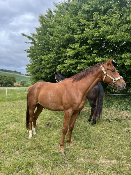 Verkaufe Hannoveraner Wallach – Vielseitigkeitstalent Zum Verkauf steht ein eleganter Hannoveraner, geboren im Jahr 2022. Dieser schöne Fuchs beeindruckt durch sein freundliches Wesen und sein vielversprechendes Potenzial für den vielseitigen Einsatz im Reitsport. Mit einem Stockmaß von ca. 165cm ( noch im Wachstum) bietet er die perfekte Größe für ambitionierte Reiter, die Wert auf Qualität und Leistungsbereitschaft legen. Seine vielseitigen Fähigkeiten machen ihn zum idealen Partner für den Turnierreitsport, insbesondere im Bereich Vielseitigkeit. Der Wallach ist gesund, gut aufgezogen und zeigt bereits erste vielversprechende Ansätze in der Ausbildung. Er ist menschenbezogen, aufmerksam, abgeklärt und mutig. Kennt Hänger, Box, Weide, Laufbox, Jungpferde ABC. Bei Interesse oder weiteren Fragen stehe ich Ihnen gerne zur Verfügung. Eine Besichtigung nach Vereinbarung möglich. Zur Zeit steht er noch auf Wiese.