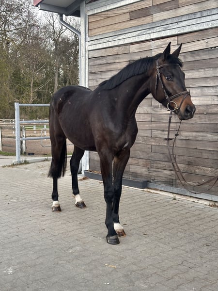 📞 Please contact us by phone if interested: Landline: 034292 / 291998 Mobile: 0176 / 22616295 🕘 Mon–Fri: 9:00 AM – 6:00 PM | Sat: 9:00 AM – 3:00 PM | Sunday: Closed ⸻ Emil – 3-year-old gelding with a distinctive feature and good basic gaits This 3-year-old dark bay gelding, Emil, impresses with his striking appearance, friendly character, and solid foundation. He currently measures approximately 16.1 hh and is of suitable size for future sport or leisure riding. A special feature are his two differently colored eyes, making him a real eye-catcher. Emil is healthy and has up-to-date X-rays with no findings. From his upbringing, there are minor purely cosmetic scratches, which do not affect him in any way. He was raised appropriately for his age and is now ready to start his riding career. With his good basic gaits, he provides a solid foundation for further training – ideal for riders who want to develop a young horse themselves. He is regularly dewormed and vaccinated, and has recently been shod. In handling, he is friendly and eager to learn. ⸻ Profile: * Name: Emil * Age: 3 years * Height: approximately 16.1 hh * Color: dark bay * Pedigree: St. Emilion * Training: unstarted / ready for training * Health: current X-rays without findings * Shoeing: recently shod * Temperament: friendly, eager to learn * Special feature: different-colored eyes (eye-catcher) ⸻ Viewing & Trial Riding: * Cancellations at least 24 hours in advance, otherwise fees apply * Demonstration by a professional rider: €25 Please provide your full name and address to confirm an appointment. Pre-purchase examination possible. Transport can be arranged. ⸻ 📍 Location: Leipzig 💰 Price: €7,900 🌐 www.deutsche-pferde-boerse.de ⸻ Note: Height information is an estimate provided by the seller and not a guaranteed feature. The sale is conducted on behalf of the owner.