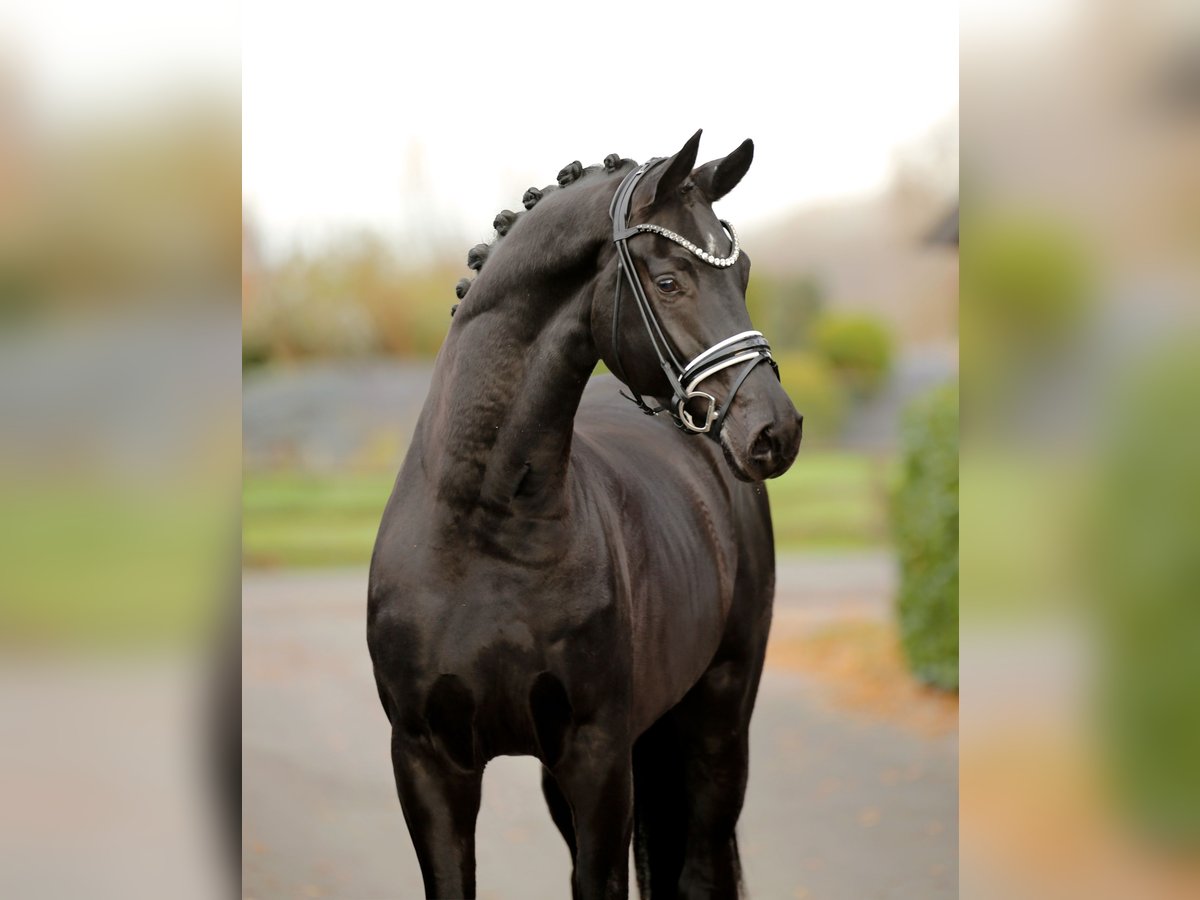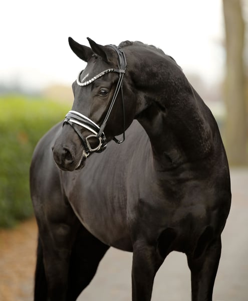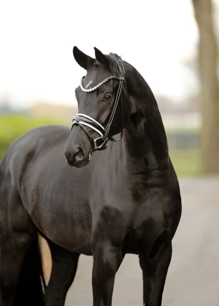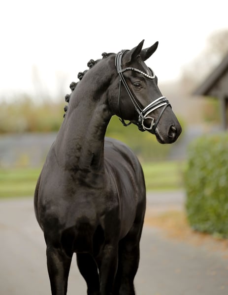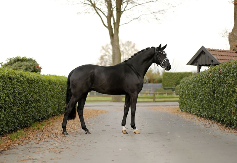 Jet black beauty with stunning presentation and impressive appearance! A solid and gently started young horse with a gold-hearted character, possessing "must-have" charm and equally excellent training potential. Always striving to do everything right and to please, while remaining honest, sincere, and eager to learn. Not only a visual dream horse and an unparalleled eye-catcher for special occasions, but also a lovable young colt at heart—searching for the perfect home. Top inspection, shipping available upon request.