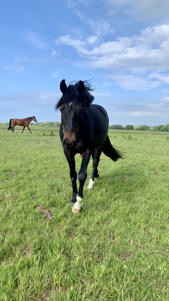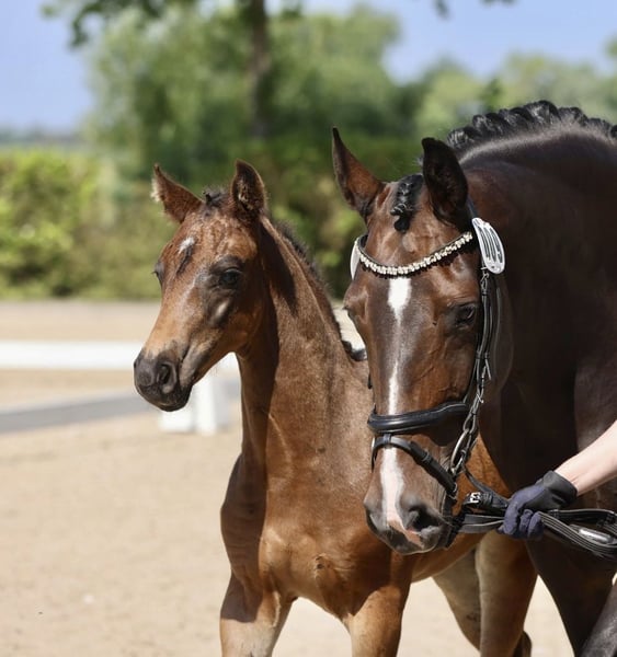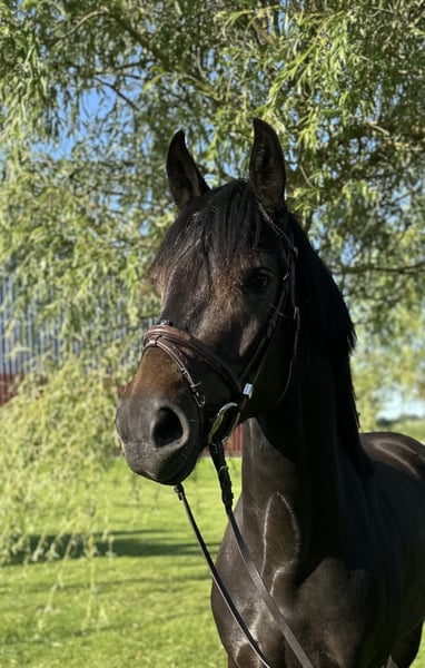 Zum Verkauf steht „Harry“, ein Hannoveraner Wallach (*2022) von For Romance I x Dimaggio, der nicht nur durch seine besonders freundliche und interessierte Art besticht, sondern auch durch seine drei sehr guten GGA auffällt. Harry ist bei mir geboren, seine Mutter ist die Hannoveraner Prämienstute „Dark Girl“, die einen ebenso guten Charakter und Bewegungspotential mitbringt. Als Fohlen wurde er vom Hannoveraner Verband mit der Verbandsprämie ausgezeichnet. Er ist absolut unkompliziert und unerschrocken im Umgang. Anbinden, putzen, satteln & trensen, longieren und Hufschmiedbesuche sind kein Problem für ihn. Zudem bewahrt er auch immer die Ruhe, wenn er zB mal allein auf der Stallgasse ist. Aufgrund meiner Schwangerschaft konnte ich den nächsten Schritt seiner Ausbildung noch nicht gehen. Dementsprechend ist er bisher nicht angeritten. Mit seiner ausgeglichenen Art und der bisherigen Vorarbeit wäre das aber sofort möglich. Harry ist sehr verträglich mit anderen Pferden, stand bei uns im Sommer immer 24/7 in einer Herde auf der Weide und geht momentan täglich in einer Gruppe auf den Paddock. Ich gebe ihn nur in Hände mit langfristiger und pferdegerechter Perspektive ab. Harry war bei mir nie krank oder lahm, wird aber leider aufgrund eines röntgenologischen Befundes unter Wert verkauft. Bei Interesse kann ich die Röntgenbilder gerne zusenden. Tel. 01726113342