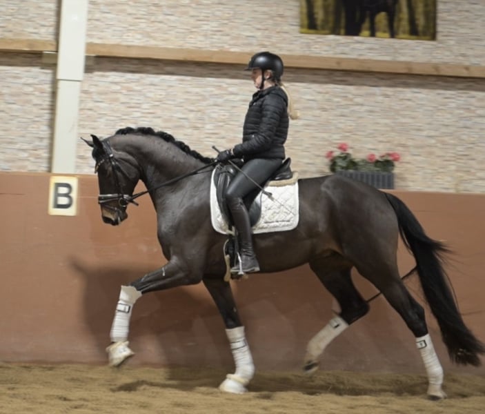 Liebe Interessenten, Für Terminvereinbarungen Probereiten senden Sie mir bitte eine WhatsApp. Für weitere Fragen bin ich tagsüber per WhatsApp erreichbar, telefonisch erreichen Sie mich am Besten zwischen 16 und 19 Uhr. Ich freue mich auf eine Kontaktaufnahme www.angelina-devittorio.de ⭐️Zenith⭐️ Alter: 4 Jahre (2022) Größe: ca 1,64 m Abstammung: Zoom x Don Frederico Ausbildungsstand: Gerade angeritten AKU: Gute Röntgenbilder vorhanden Zum Verkauf steht ein vierjähriger, traumhafter Wallach von Zoom, der mit drei außergewöhnlich guten Grundgangarten und sehr aktivem, kraftvollen Hinterbein begeistert. Hier wächst ein Nachwuchspferd von besonderer Güte heran, das durch seine natürliche Bewegungsqualität, seinen modernen Typ und seine Ausdrucksstärke überzeugt. Der Wallach ist ganz frisch angeritten, stammt direkt vom Züchter und ist seit wenigen Wochen unter dem Reiter. Dabei zeigt er sich stets motiviert, lernwillig und bemüht, alles richtig zu machen. Seine hervorragende Grundqualität prädestiniert ihn für eine sorgfältige, fördernde Ausbildung und eröffnet ihm beste Perspektiven für das ganz große Feld. Im täglichen Umgang präsentiert er sich sehr lieb, unkompliziert und fein im Wesen. Er verfügt über keinerlei Unarten, ist aufmerksam und möchte seinem Menschen jederzeit gefallen. Aufgrund seines jungen Alters und des frühen Ausbildungsstandes ist jedoch Jungpferdeerfahrung mit frisch angerittenen Pferden erforderlich. Ein absolut liebenswerter Wallach mit feinem Charakter, der zu einem ganz besonderen Sportpartner heranreifen wird.