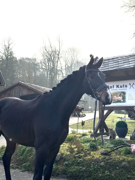 Talentierter 4-jähriger Dressurwallach von Finest x Florencio I Zum Verkauf steht ein vielversprechender 4-jähriger Wallach mit sehr guter Abstammung. Die Mutterlinie ist leistungsgeprägt, Geschwister sind bereits bis zur Klasse S erfolgreich. Er ist brav im täglichen Umgang, schmiedefromm und kennt Herdenhaltung. Der Wallach ist seit Anfang des Jahres unter dem Sattel und befindet sich aktuell in regelmäßiger Arbeit. Er kennt Reitergewicht sicher und zeigt sich dabei motiviert, lernwillig und unkompliziert. Er verfügt über drei ansprechende Grundgangarten und bringt viel Potenzial für den Dressursport mit. Aufgrund seines Alters ideal für ambitionierte Reiter, die sich ein Pferd zur weiteren Ausbildung aufbauen möchten. Gesund und ohne bekannte Mängel. Eine AKU kann auf Wunsch selbstverständlich durchgeführt werden. Standort: Hof Kuls
