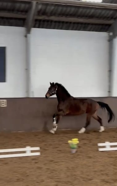 Energetic gelding by Tik Tok – roughly ridden. He is familiar with free jumping, the blacksmith, loading, and is turnout with a gelding group. Very good X-ray results available. Half-brother to a premium stallion from Hanover and HLP winner.