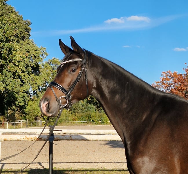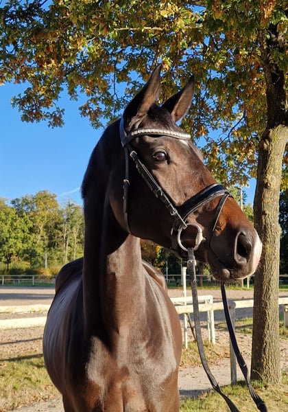 Riding-ready gelding with presence – 4 years old, 16.1 hh For sale is a handsome, dark bay gelding with plenty of expression and charm. Pedigree: Shu Fu - Gribaldi He is 4 years old and stands at 16.1 hands. With his good basic gaits, pleasant rideability, and balanced temperament, he consistently demonstrates motivation and willingness to learn under saddle. This young gelding impresses with: - Elastic, expressive, and ground-covering movements - Rideability and eagerness to work - Gentle temperament – well-behaved in handling - Modern, athletic appearance Ideal for ambitious riders seeking a promising young horse with potential in dressage or all-round disciplines. A current video can be provided. X-rays are available. Directly from the breeder. Location: Postal code 29336