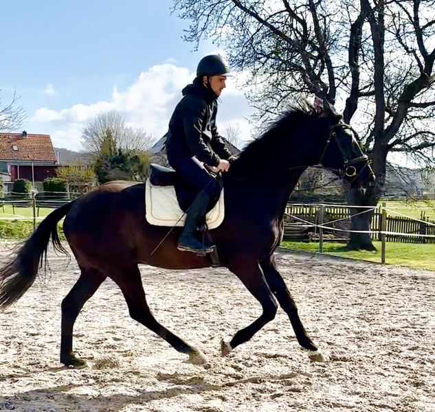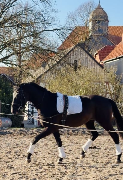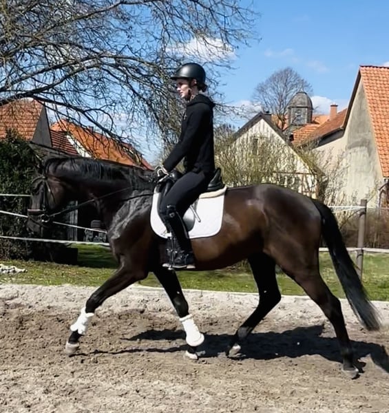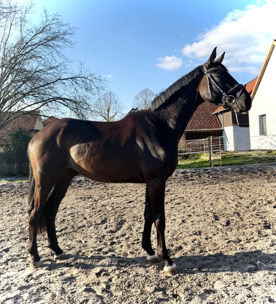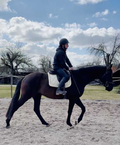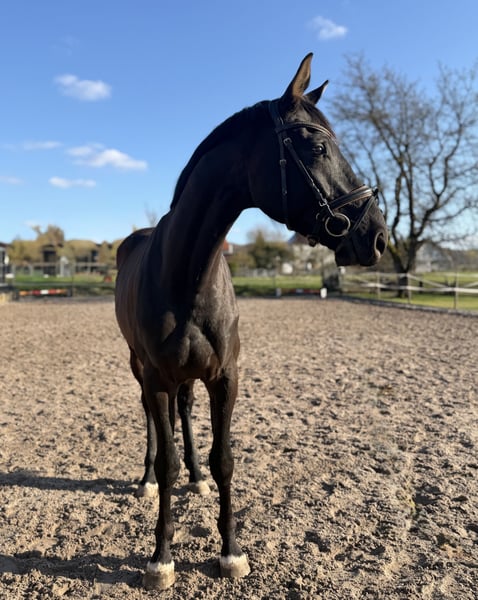 Direkt vom Züchter gerade erst 4j. frisch schonend angeritten DER HAT ALLES- was ein künftiges Dressur- SPORTPFERD braucht ! intelligent, positiv sensibel schick, mit AUSSTRAHLUNG, top korrekter, KRÄFTIGER Körperbau, dabei elegant motiviert zu arbeiten und - klares TALENT für VERSAMMLUNG ! ! insgesamt 3 sehr SEHR GUTE GGA, super Schritt, immer im Takt, Trab, der unter den Körper arbeitet und "mit Hebel" und großer Galopp die Mutter, eine StPrSt mit sehr guter Stutenprüfung (8,33) war mehrfach hocherfolgreich in Reitpfd., Dpfd-A und L und sogar Teilnehmerin BuCha 5j. auch die Großmutter war auf Anhieb Rpfd-erfolgreich aus der weiteren (Londonderry) Mutter stammen Eliteauktionspferd (S*-Dressur) und eine internat. 4*S-GRAND-PRIX-Stute, sowie weitere Dressurpferde. "Dirty Harry" ist BEREIT für die weitere Ausbildung mit der Idee "KÜNFTIGES SPORTPFERD" - bis vielleicht Grand Prix ??