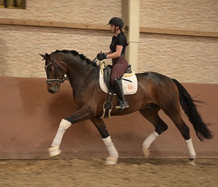 Liebe Interessenten, Für Terminvereinbarungen Probereiten senden Sie mir bitte eine WhatsApp. Für weitere Fragen bin ich tagsüber per WhatsApp erreichbar, telefonisch erreichen Sie mich am Besten zwischen 16 und 19 Uhr. Ich freue mich auf eine Kontaktaufnahme ⭐️Toni⭐️ Alter: 4 Jahre (2021) Größe: ca. 1,72 m Abstammung: Taurus x Fürst Romancier Ausbildungsstand: angeritten AKU: Gute Röntgenbilder vorhanden Zum Verkauf steht ein im Hengsttyp aufgemachter, super lieber Youngster – ein Sohn des Taurus. Er hat 3 Top GGA , vor allem sein wirklich überragender Schritt ist besonders hervorzuheben . Dazu einen super lieben Charakter . Seine Rittigkeit, gepaart mit Nervenstärke und klarem Kopf, machen ihn zu einem echten Traumpferd unter dem Sattel. Er ist direkt vom auf Züchter und ist jetzt solide angeritten. Bald startklar für seine ersten Reitpferdeprüfungen und eignet sich aufgrund seines Charakters auch als top Amateurpferd, für jeden Amateur ab A/L Niveau mit Jungpferdeerfahrung geeignet . Hier reift ein bildschönes Nachwuchspferd mit bester Perspektive und top Charakter heran ⚜️ Tel: 0171-3438949 ⚜️ E-Mail: a.devittorio@web.de ⚜️ https://www.ehorses.de/angelinadevittorio ⚜️ Facebook und Instagram: Angelina De Vittorio ⚜️ Videos bitte per WhatsApp: 0049 171 3438949