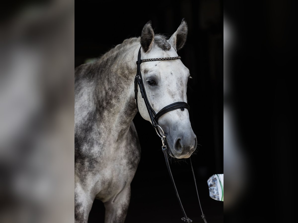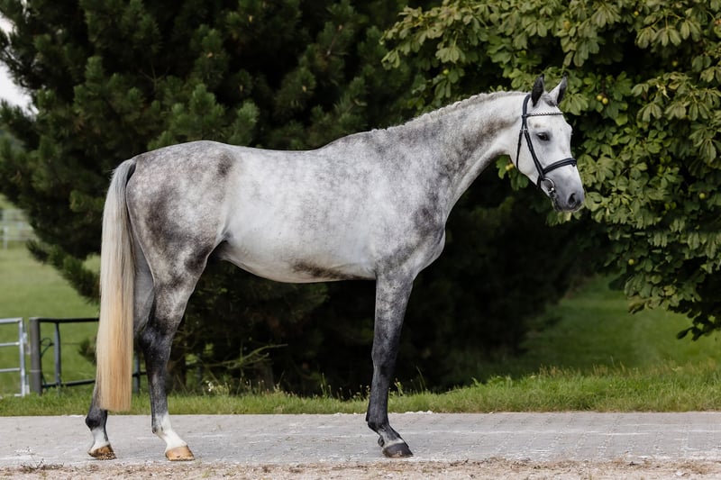 **Elegant Hanoverian Gelding – Future Jumping Star** We are pleased to offer this promising Hanoverian gelding, born in 2022, for discerning riders seeking a high-quality prospect. Standing at 172 cm, this striking grey gelding combines classic Hanoverian conformation with a natural talent for jumping. He has been well-handled from an early age and shows a calm, willing temperament, making him an ideal partner for riders aiming to develop a competitive jumping career or a versatile sport horse. His athletic build and balanced movement underpin his potential to excel in show jumping or eventing disciplines. This young Hanoverian offers a solid foundation, with excellent conformation and a promising scope for future development. His friendly nature and intelligent expression make him a pleasure to handle and train. A rare opportunity to acquire a well-bred, well-started young horse with a bright future ahead. For more information or to arrange a viewing, please contact us.