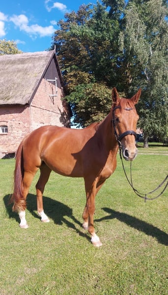 Verkaufe Hannoveraner Wallach – direkt vom Züchter Zum Verkauf steht ein großrahmiger Fuchs-Wallach. Umgängliches Wesen, brav beim Schmied, aus Zeitmangel noch nicht angeritten.