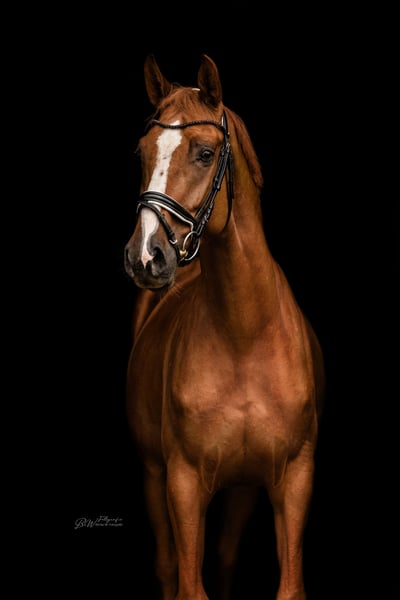 For sale is our Vital. He has already been lightly backed and is ready for new challenges. Equipped with a calm demeanor, talent over fences, and a affectionate and gentle nature, He already knows free jumping and shows enthusiasm and confidence in this discipline. In the arena, he makes daily progress and impresses with his eagerness to learn. Please feel free to contact us for more information.