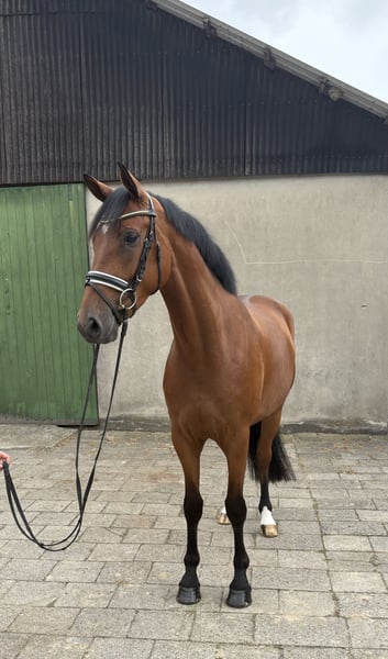 Benito ist ein 5 jähriger bildschöner Wallach abstammend von Benicio / Herzensdieb . Er ist ein tolles Reitpferd mit allem was für eine dressurerfolgreiche Zukunft nötig ist. Benito verfügt über drei überdurchschnittliche Grundgangarten und überzeugt unter dem Sattel mit bester Arbeitseinstellung. Er ist super brav und unkompliziert ein richtiges Herzenspferd mit tollem Charakter. Benito ist direkt vom Züchter und schonend im Herdenverband groß geworden nun wird altersgemäß ausgebildet. Er ist für jeden Amateur geeignet oder auch ein tolles Ausbildungspferd für den Dressursport Er hat mehrere Geschwister, die bereits erfolgreich im Sport laufen. Unter anderem einen Bruder, der direkt seine erste S*** vor kurzem mit einem Sieg feiern konnte. Ein sehr guter TÜV liegt vor Leider koppt er ab und zu mal... Anfragen am besten direkt per Telefon oder WhatsApp