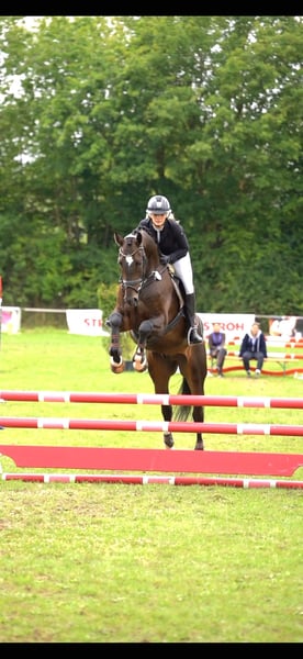 This promising 4-year-old gelding impresses with quality and a remarkable temperament. He already has show jumping success under his belt, having won in the A-level jumping classes and placed in L-level competitions. In handling, he is consistently well-behaved, personable, and straightforward. Under saddle, he is a pleasure to ride—motivated, willing, and always eager to please his rider. In the show jumping arena, he demonstrates good awareness, ability, and an unwavering desire to safely clear every obstacle. He easily and happily masters cross-country jumps. In dressage, he is already well-trained at an elementary level and can perform flying changes. An ideal horse for ambitious riders seeking a talented, well-trained young horse with a lot of heart and promising future potential. Please contact us exclusively by phone at 015237351947 if interested.