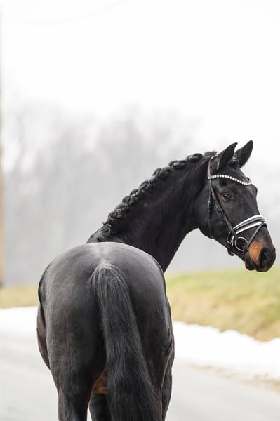 Valugie (geb. 2021) ist ein großrahmiger Wallach mit ca. 174cm Stockmaß und bester sportlicher Abstammung. Vater ist der bewährte Va Pensiero v. Vitalis, bekannt für Rittigkeit, Ausdruck und Bewegungsqualität. Der junge Sportler befindet sich zur Zeit auf Reitpferde-Niveau und zeigt jeden Tag seine ausgeglichene Art, Arbeitseinstellung und Motivation dem Reiter zu gefallen. Valugie überzeugt mit dynamischen, bergauf angelegten Bewegungen - besonders hervorzuheben ist seine kraftvolle, bergauf gesprungene Galoppade. Charakterlich präsentiert er sich im Umgang unkompliziert, neugierig, verschmust und unerschrocken. Ein angenehmer Partner im Stallalltag als auch bei neuen Eindrücken. Ein echter Leistungstyp mit Ehrgeiz für das große Viereck - ideal für den ambitionierten Reiter, der ein perspektivreiches Nachwuchspferd sucht.