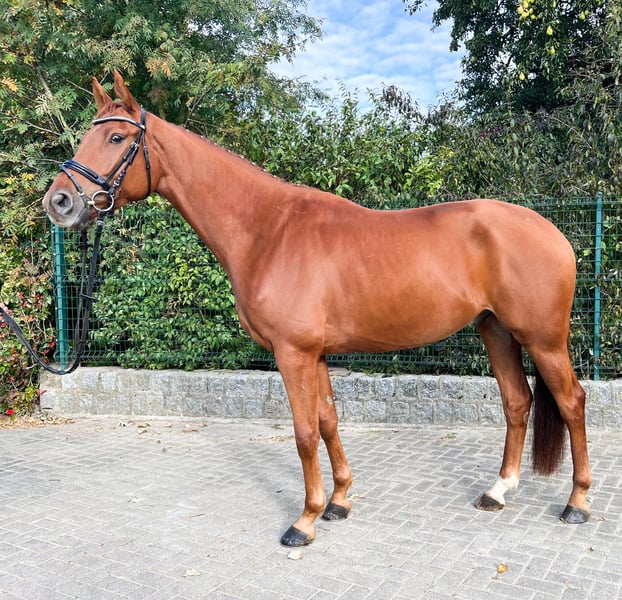 Dieser charmante, lernfreudige, Hannoveraner Fuchswallach, namens Villie Vilados, aus dem ersten hervorragenden Jahrgang des prämierten MP Vivaldos, mit einer ausgezeichneten Leistungsgenetik, ist stetig bestrebt, sich von seiner besten Seite im Umgang zu geben. Mit bestem Rötgenbildern ausgestattet, ist er offen freundlich und baut gerne eine Bindung zu seinem Menschen auf. Durch seinen guten und korrekten Charakter, konnte er eine sichere, solide und harmonische Grundausbildung genießen, welches dem neuen Besitzer in jedem Fall zu Gute kommt. Villie ist schonend und spielerisch eingeritten und A-fertig ausgebildet und steht bereits sensibel am Schenkel für Seitengänge. Sein blutgeprägtes Erscheinungsbild und seine Größe (derzeit 175cm) wurden beim 4-jährigen Ein-/Anreiten berücksichtig, auf das er Freude am Tun mit Menschen hat und behält. Villie ist bereits als Absetzen zu uns gekommen und routiniert in jeglichen, menschlichen Umgang. Er ist Herdenbetrieb und Koppel gewohnt, ist Wasser-/ schmiede- und verladefrom und es kann von ihm, nahtlos, aus seinen Entwicklungsphasen berichtet werden. Villie Vilados ist lässig in Begegnung mit Hunden, sowie Landwirtschaftlichen Fahrzeugen. Selbst in die Ostsee ist er als 3 Jähriger, als Handpferd vertrauensvoll mit rein spaziert. Durch seine geschlossene Größe und Farbe ist Villie Vilados ein Blickfang im Dressur Viereck und er ist bereits erfolgreich in seiner ersten Saison in A-Dressurpferdeprüfung mit Platzierungen nach Hause gekommen. Villie soll nun zu einem neuen Herzensmenschen finden, auf das er weiter gefördert werden kann. Er steht in 18279, damit er weiter im Training bleibt. Bei konkreten Absprache steht er für Probereiten zur Verfügung.