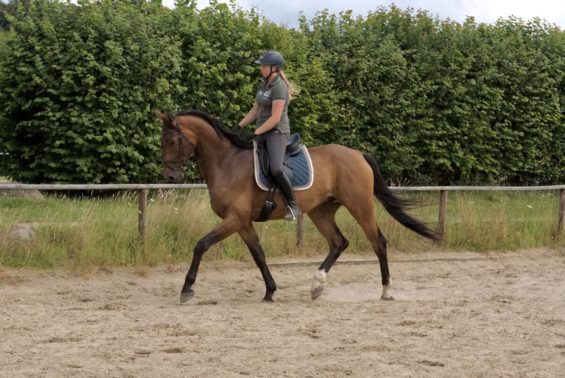 Intelligenter grossrahmiger Sohn des Cadeau Noir, der auf Dressurpferde A Niveau sich befindet auf dem Weg zu Dressurpferde L Niveau. Aufgrund seiner Größe erst spät angeritten,ca 1 Jahr unter dem Sattel, und noch in der Entwicklung stehend. Ich wünsche mir für Cedrik einen erfahrenden Reiter der sein Potential fördern kann. Cedrik ist sehr sitzbequem, bewegt sich gut in allen drei Grundgangarten und hat schon mal ein Traningsturnier besucht und hat sich dort auch unaufgeregt verhalten. Er wird schonend und solide ausgebildet. Cedrik ist herdenverträglich, regelmäßig entwurmt, beim Schmied und geimpft. Anhänger fahren ist auch kein Problem, alleine oder zu zweit. Gute Röntgenbilder aus dem letzten Jahr sind vorhanden. Ein Kennenlerndate ist nach Absprache jederzeit möglich.