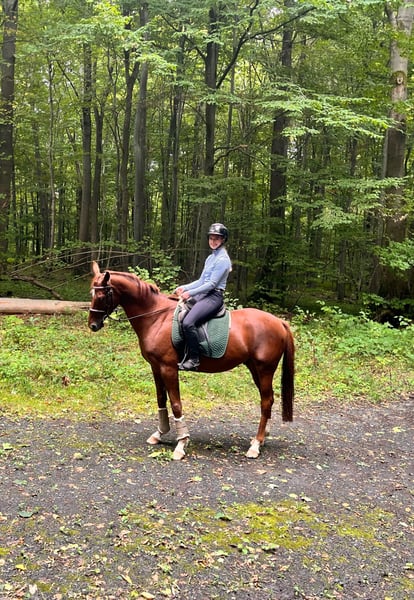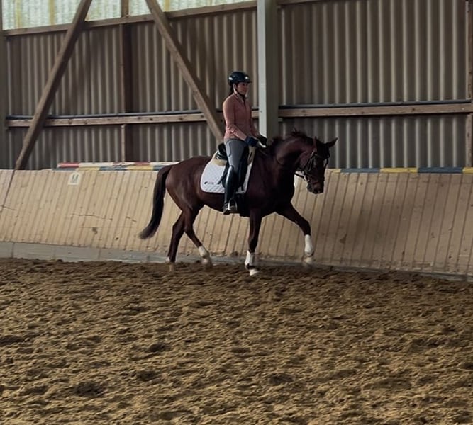 Verkaufe 6-jährigen Fuchswallach – Bewegungstalent mit Traumcharakter! Zum Verkauf steht ein außergewöhnlicher 6-jähriger Fuchswallach mit einem Stockmaß von 1,62m Er ist ein Benicio-Enkel und stammt ab von By your Side-Kaiserkult-Der Lord. Er bringt nicht nur eine beeindruckende Abstammung mit, sondern auch einen Charakter, der seinesgleichen sucht. Das Wichtigste im Überblick: Alter: 6 Jahre Stockmaß: ca. 1,62 Farbe: Fuchs Abstammung: By your Side Ausbildung: Dem Alter entsprechend gefördert Gesundheit: Schmiede- und verladefromm, keine Unarten oder Auffälligkeiten Gangarten: sehr gute Grundgangarten mit viel Schwung und Elastizität, 4jährig Reitpferdeprüfung platziert (8,5 Galopp, 7,5 Trab) Dieser Wallach überzeugt auf ganzer Linie: Mit seinem harmonischen Körperbau, drei ausdrucksstarken, taktsicheren Grundgangarten und einer tollen Arbeitseinstellung ist er sowohl für ambitionierte Freizeitreiter als auch für den Sport äußerst interessant. Seine Bewegungen sind modern, raumgreifend und mit viel Mechanik. Sein Wesen ist absolut verlässlich: Er zeigt sich im täglichen Umgang sehr freundlich, menschenbezogen und nervenstark. Egal ob beim Hufschmied, Verladen oder im neuen Umfeld – er bleibt stets gelassen und kooperativ. Täglich im Umgang ein echter Schatz. An der Straße aufgewachsen, kennt er LKW, Landw. Maschinen und Busse. Offen für neue Aufgaben, lernt schnell und motiviert Keine Unarten – weder beim Reiten noch im Stall Ideal für Dressur, aber auch vielseitig einsetzbar Dieser Wallach ist ein absoluter Rohdiamant mit Top-Charakter und besten Voraussetzungen für eine erfolgreiche Zukunft unter dem Sattel. Ob für ambitionierte Freizeitreiter oder Turniereinsteiger – hier wartet ein zuverlässiger Partner fürs Leben. Bei ernsthaftem Interesse freue ich mich über eine Nachricht oder einen Anruf. Videos werden auf Anfrage gerne versendet. Röntgenbilder liegen vor.