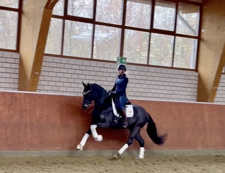 EscaHit is a stunning Hanoverian gelding who combines expressive movement, rideability, and a naturally uphill build with a bright future in dressage. Bred for talent and produced carefully, he is a horse with all the raw quality to develop into a serious competitor for a rider looking to bring along a young partner. Training & Show Experience EscaHit has been thoughtfully started and correctly developed. He has shown locally at First Level with success and is confidently schooling movements from Second and Third Level, including counter canter, half pass, and flying changes. His gaits are expressive yet comfortable to sit, with a particularly elastic trot and a canter that shows excellent potential for collection. His foundation of training is solid, and he is now ready to continue progressing with a rider who wants to put the finishing touches on a talented young horse. Temperament & Rideability EscaHit is best described as a sensitive yet willing partner. He thrives with a rider who is tactful, confident, and appreciates a forward-thinking horse. While he is naturally energetic, he is always generous and tries to understand what is being asked of him. His kind personality makes him a joy to work with on the ground, and he is as easy to handle in the barn as he is elegant under saddle. Contact us today for price, video, and further details.