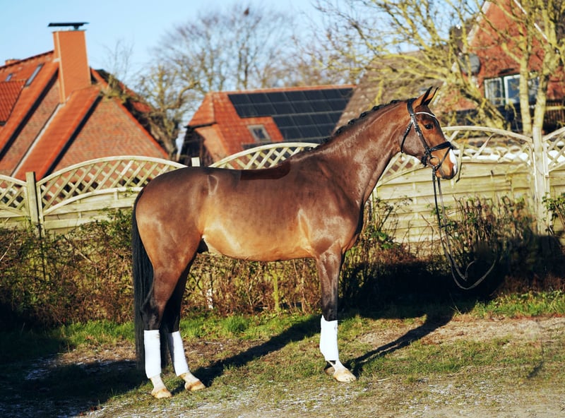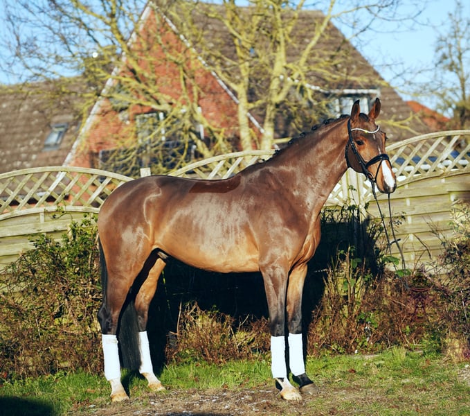 A typy son of Valdiviani. Vio is well-trained, light in the hand, and brings great joy to his rider every day. He is confidently competing at a Prix St. Georges level, already performs traversals, and we have started working on flying changes. He scored an 8.4 in Dressage Horse Class A, securing the win. A very typy horse that presents a beautiful picture both in the stable and under saddle. With us, he has proven to be well-behaved and uncomplicated both in handling and in the herd. No emails, only phone calls. Price plus VAT. Information without guarantee.