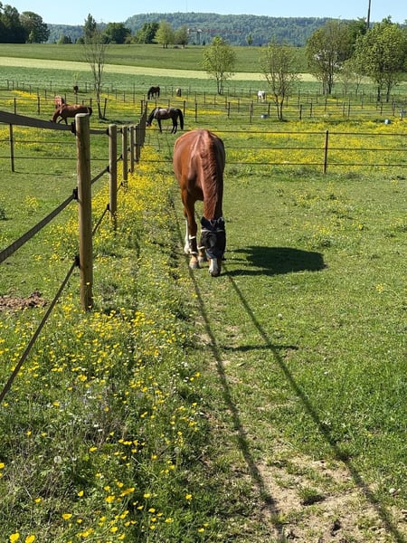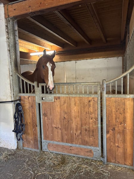For sale is a handsome Hanoverian gelding, born in 2019, with a height of 1.72m. This loving and well-mannered gelding impresses with his pleasant nature and willingness to learn. He is well-socialized and has regular access to pasture and exercise. The gelding is well-behaved in handling, both when led and when ridden, and is also good for loading and farrier work. Ideal for riders looking for a reliable partner for dressage or simply a faithful companion for joint trail rides and smaller show jumping competitions. If you are interested or have any further questions, please feel free to contact me.