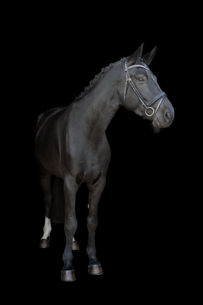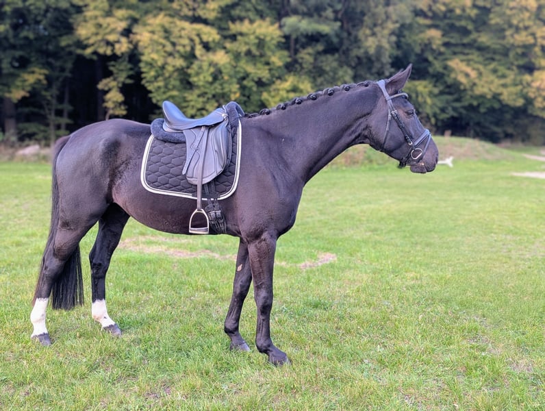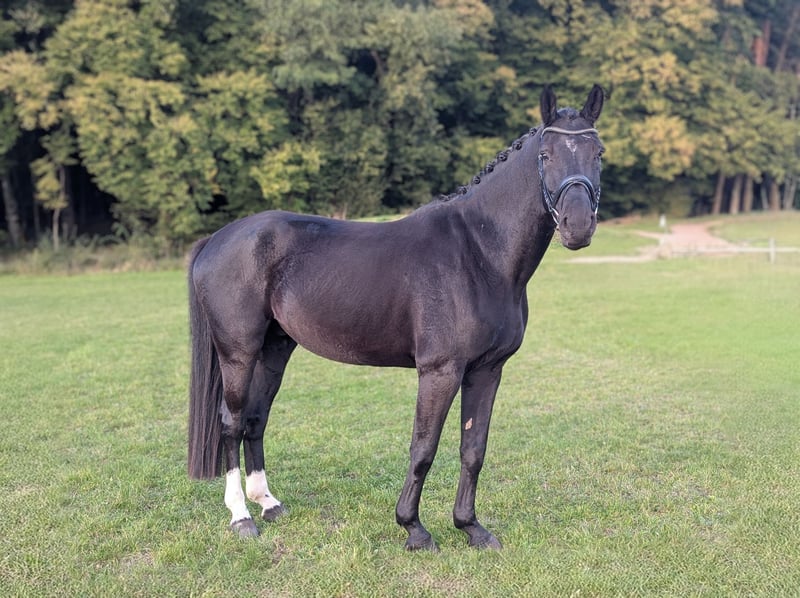 With a heavy heart, I must part with my 6-year-old Hanoverian, Valerio. Horse Data: DOB: April 2019 Gender: Gelding Color: Black-brown Breeding Area: Hanover Pedigree: Sire: Vidar (by Viscount) Dam: Roxana Dam's Sire: Rock Forever I (by Rockwell) I purchased him unbacked in December 2021 with a comprehensive vet check (X-rays available) directly from the breeder. On the ground and in handling, he is absolutely sweet and relaxed. He is also always cautious with children. He is familiar with walks in the woods and many other activities through lunging or small jumps in hand. Unfortunately, he has not become the reliable horse I had hoped for when riding. Valerio is ridden (walk, trot, canter) and is already familiar with poles and cavalettis with a rider. However, he currently has a problem with mounting, which is why he is not being ridden at the moment, and trial rides are also not possible. Valerio needs a rider with a lot of experience, calmness, and patience to help him regain trust with the rider. Then he will surely become a great sport or leisure partner. Since he has been in my possession, he has been barefoot and has no further vices or illnesses. He is accustomed to box housing with daily turnout in a mixed or purely gelding herd.
