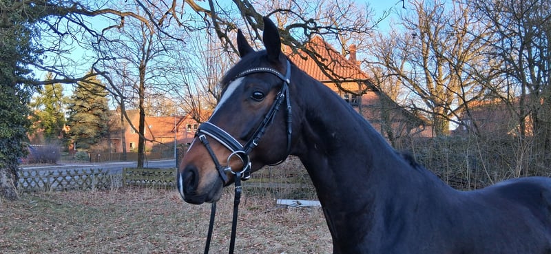 Hannoveraner Wallach – Vielversprechender Dressurpartner Dieser elegante Hannoveraner Wallach wurde im Jahr 2020 geboren und besticht durch seine beeindruckende Erscheinung und sein vielversprechendes Talent im Dressursport. Mit einem Stockmaß von 173 cm bietet er die perfekte Größe für ambitionierte Reiter, die auf der Suche nach einem zuverlässigen und gut ausgebildeten Partner sind. Sein dunkles Braun verleiht ihm eine edle Ausstrahlung, die durch seine harmonische Konstitution und seine aufmerksame Art ergänzt wird. Der Wallach ist bereits gut geritten und zeigt eine vielversprechende Grundausbildung im Dressurviereck. Seine Bewegungen sind taktklar, elastisch und ausdrucksstark, was ihn zu einem idealen Kandidaten für den gehobenen Turniersport macht. Er ist freundlich im Umgang, wachsam und stets motiviert, Neues zu lernen. Dank seiner soliden Grundausbildung und seinem angenehmen Charakter ist er sowohl für fortgeschrittene Reiter als auch für ambitionierte Nachwuchstalente geeignet. Ein Pferd mit viel Potenzial, das auf der Suche nach einem engagierten Reiter ist, der seine Entwicklung weiter fördert. Bei Interesse freuen wir uns auf Ihre Kontaktaufnahme, um weitere Details zu besprechen und einen persönlichen Eindruck zu vermitteln.