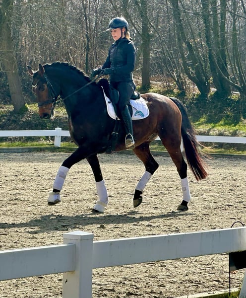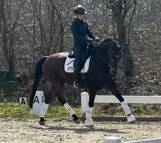 Sir Smart, affectionately called Smarty by us, is a horse that strives to please every day and always gives his best! He is clear-headed and very sensitive to ride, with three very good basic gaits. Smarty has already achieved placement at L level and is ready for M. We believe he has great potential for piaffe and passage. Smarty has no vices whatsoever. He also comfortably carries a tall rider! He is suitable even for less experienced riders without any issues. He is familiar with herd life and turnout 24/7. For more information, please feel free to call us.