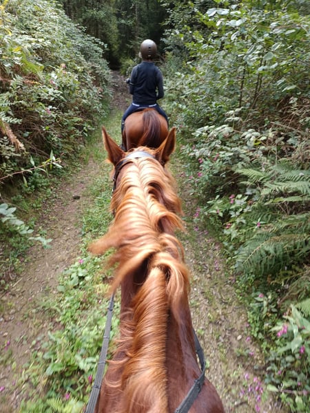 When introduced to new riders, he may initially wonder if he needs to go forward, but once this is clarified, he is not driven or spooked while riding.