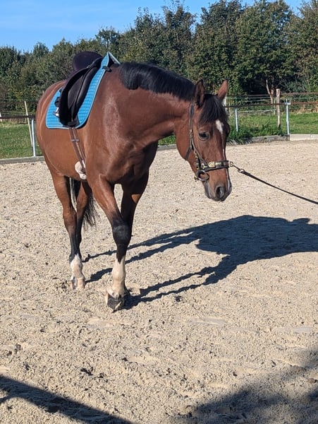 C'est à contrecoeur que je cherche pour mon cheval Hannoverien de 6 ans, un nouveau foyer stimulant et bienveillant. Pour des raisons professionnelles et personnelles, je n’ai plus le temps nécessaire pour poursuivre son éducation. Lightning a été travaillé en douceur à pied (horsemanship, longe, double longe, dual gassing, apprentissage du bon mouvement pour pouvoir porter un cavalier en toute sécurité) et a été doucement monté à la fin de l’année 2023. Depuis début 2024, il est régulièrement monté sous la selle. Il apprend rapidement lorsque l’on lui explique calmement, équitablement et de manière compréhensible. Il est maintenant prêt à poursuivre son apprentissage avec un cavalier. Je ne cherche pas un cavalier débutant, mais une personne expérimentée, dotée d’un bon sens du cheval, prête à faire preuve de patience, à agir avec équité et à continuer à le faire progresser. Pas de fonctionnement à la pression. Conditions d’élevage & santé : - Paddock extérieur, parage naturel, vaccins à jour - Les dents sont vérifiées et traitées régulièrement - Chiropracteur 1 à 2 fois par an - Asthmatique (surtout en hiver), gérable avec un bon management - Un petit problème radiologique à l’arrière droit sans aucune restriction Son pedigree laisse supposer un talent pour le saut d’obstacles. Il n’a malheureusement pas pu être testé en saut libre en raison de la situation en salle (saut interdit). Ce n’est pas une vente d’urgence – place avant le prix. Pour toute expression sérieuse d’intérêt, merci de me contacter par téléphone.
