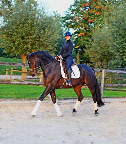 Dieses Bild von einem Pferd zucht seinen Herzensmenschen. Bereits L platziert überzeugt dieser super schicke Kerl mit 3 sehr guten GGA und einem dem Menschen sehr zugewandten Charakter. Er möchte immer dabei sein und freut sich über jede Art von Zuwendung. Dressurcideo unter: 0177 275 9886 Ein entspanntes Video Youtube: https://youtube.com/shorts/oFCtxmJSHEM?si=ibQr4Eoc28Inq3It Er ist problemlos in der Box mit täglichem Weidegang zu halten, kennt aber seit seiner Geburt auch Offenstallhaltung. Er kennt Ausritte genau so wie Stangenarbeit und kleine Sprünge. Er wird hier auch mit Pad geritten und macht das sehr artig. Auf dem Video noch ohne Eisen, seit kurzem Beschlagen. Bei seiner Besitzerin war verladen um zur Halle zu fahren an der Tagesordnung. Gern geben wir Ihnen weitere Infos : 0177 275 9886