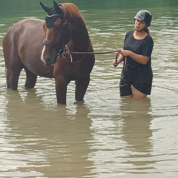 🌟NÉVÉO hannovrien de 7 ans 1m70🌟 Une lignée de dressage prestigieuse 🏆 🏅Le père Néchristo est le fils du célèbre Negro 🏅La mère Lady Love W est la fille du talentueux Londonnery 💥Névéo à été mis au travail tardivement Il débute les concours Dans le sang, volontaire, chic, équilibre naturel,3 bonnes allures, confortable ....🤩🤩 Il est sensible, avec du sang mais gentil ce qui en fait un cheval fin dans les aides Volontaire dans tout ce qu'on lui propose💪 Potentiel à terme épreuves amateur et pro en dressage Amateur CSO et Hunter Facile au quotidien peu vivre en box/paddock ou pré