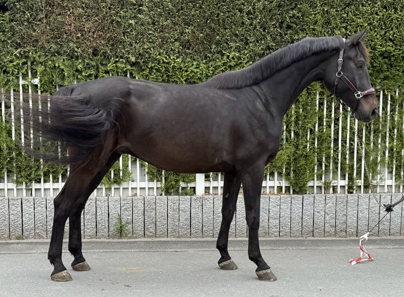 ✨ For Sale: Gelding "Fly with me" (Mucki) ✨ I am offering my homebred gelding Fly with me (known as Mucki) for sale. He is a 7-year-old, elegant black stallion (approximately 16.1 hh) with excellent bloodlines from Fahrenheit x Bon Bravour. Mucki was initially lightly backed due to personal circumstances but now has a solid basic education. He is regularly worked and introduced to new tasks with patience and calmness. He learns quickly and with enthusiasm, demonstrating diligence and effort. Currently, we are working on transitions between walk and canter, lateral movements, and the first flying changes. He is still at the beginning stages but quickly internalizes the principles involved. He has all the qualities to become an outstanding riding horse with further training: he moves with expressive gaits, is very comfortable to sit, and impresses with his elegant, modern appearance. In terms of character, Mucki is sensitive and attentive. He needs a fair, calm, and empathetic rider who can provide him with security and clear guidance. He is not suitable for beginners, but I can easily imagine a confident, experienced amateur rider working well with him. It is important to me that he finds a loving and permanent home. Sale to dealers or trainers who intend to resell him at a lower price is not possible. 📌 Note on trial rides: To ensure serious interest, I charge a fee of €40 for a trial ride. This amount will be deducted from the purchase price if the sale proceeds. Unfortunately, the so-called "riding tourism" has increased significantly lately, so I take this precaution. Mucki is now looking for a home where he can receive the individual care and attention he deserves—something I am currently unable to provide. Since I do not expect this to change in the foreseeable future, I have made the difficult decision to sell him. 💫 If you are looking for a special horse with great potential and heart, you should definitely meet him. ➡️ As Mucki continues his training and visibly progresses, the price will be adjusted over time according to his development and training level.