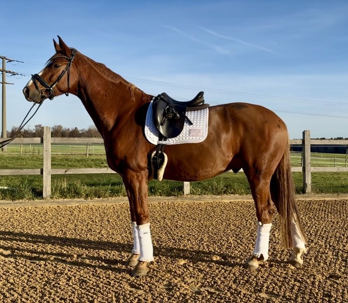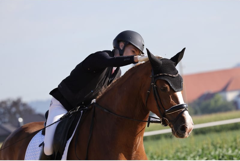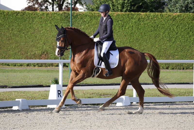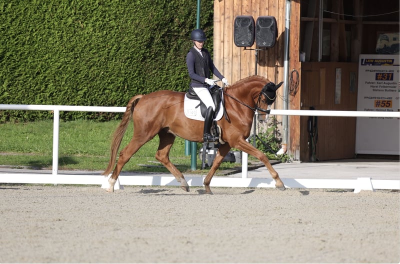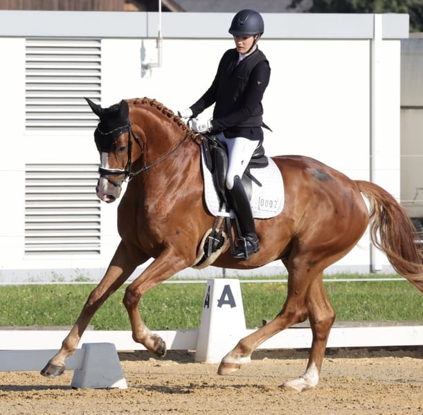 Hannoveraner Wallach – Vielseitiger Dressurpartner mit großem Potenzial Zum Verkauf steht ein beeindruckender Hannoveraner Wallach, geboren im Jahr 2019. Dieser im Hengsttyp stehende Fuchs mit einer Größe von 179 cm vereint beeindruckende Präsenz mit einem harmonischen Erscheinungsbild. Quentin sicherte sich sofort auf seinem ersten Tunieren in der Dressurpferde A alle Siege, in den ersten Dressurpferdeprügungen der Klasse L war er ebenfalls Sieger und Plaziert. Im Moment befindet er sich in der Ausbildung zur Klasse M Mit fliegenden Wechseln wurde bereits begonnen. Dieser junge Wallach zeigt bereits vielversprechende Ansätze für die nächsten Schritte in den höheren Dressurklassen. Quentin ist gut geritten hat sehr gute GGA er verfügt über raumgreifende Grundgangarten, die durch Schwung, Elastizität und viel Gleichgewicht bestechen. Seine aufgeschlossene und freundliche Art macht ihn zu einem zuverlässigen und liebenswerten Partner für ambitionierte Reiter, die Wert auf eine harmonische Zusammenarbeit legen. Dank seiner guten Abstammung und seines ausgeprägten Lernwillens bietet er großes Entwicklungspotenzial für den Dressursport. Dieser Hannoveraner ist ein vielseitiger Sportpartner, der mit der richtigen Förderung sein gesamtes Potenzial entfalten kann. Ein echtes Talent, das auf eine erfolgreiche Zukunft im Dressursport wartet. Bei Interesse freuen wir uns auf Ihre Kontaktaufnahme, um weitere Details zu besprechen und einen Besichtigungstermin zu vereinbaren.
