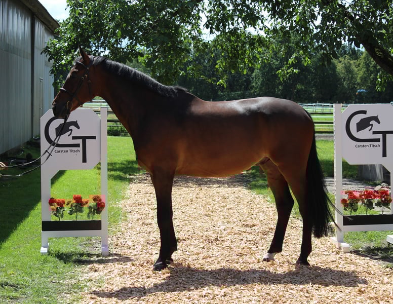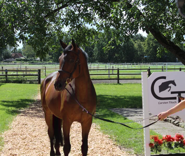 For sale is a beautiful Hanoverian gelding, born in 2018. This dark brown Cornet Obolensky Sohan not only impresses with his appealing appearance but also with his great potential in show jumping. He is ideally suited for ambitious riders looking for a talented partner in the sport. The gelding stands out with his good movement quality and jumping technique, making him a promising ribbon collector. He has already proven this in show jumping competitions at the L level with scores of 8. If you are interested or have any further questions, please feel free to contact me at 01724428863. More quality show jumping horses available! *Sale on behalf of someone else*