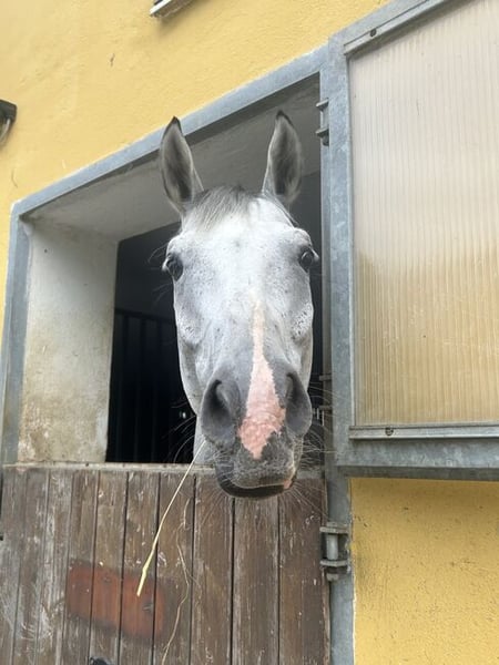 Verkaufe aus gesundheitlichen Gründen meinen Hannoveraner Fliegenschimmel „Cortino“ (von uns liebevoll „Kurti“ genannt). Leider hat sich bei meiner Reha rausgestellt, dass ich den gehobenen Reitsport voraussichtlich leider nicht mehr weiter ausübe(n kann) und dafür ist das Pferd viel zu schade. Er springt zu Hause auch schon über 1.40m und wurde am Turnier auch schon bis 1.15m vorgestellt. In der letzten Saison war er leider auf keinem Turnier, da ich verletzungsbedingt nicht reiten konnte. Kurti ist eher ein sensibles Pferd (im Maul), das aber definitiv für den hohen (Spring)Sport geeignet ist! Er will immer auf die andere Seite und bringt sehr großes Potential und Vermögen mit! Beim Reiten braucht er, auch aufgrund seines Alters, eher eine erfahrene Reiterin/einen erfahrenen Reiter, die/der ihm auch mit Gefühl aber Konsequenz zeigt, wo es lang geht - deshalb ist er nicht für Anfänger geeignet! Er ist sehr lernwillig und lernt auch schnell. Er buckelt und steigt nicht! Ich könnte ihn mir sehr gut unter gut reitenden Amateuren oder auch Profis vorstellen, die ihn weiter fordern und fördern und im hohen (Spring)Sport mitreiten möchten. Derzeit steht er auf einem Paddock - zeigt sich aber sehr sozial mit anderen Pferden. Er kuschelt auch gerne und wenn er Vertrauen gefasst hat, macht er auch jeden Blödsinn mit 😉 und lässt sich problemlos auf Neues ein. Charakterlich ist er einfach ein kleiner frecher und süßer Wallach und im Umgang total lieb und problemlos (auch zu Kindern). Derzeit ist er unter seinem Wert zu verkaufen, da er nicht 100% im Training steht und in dieser Saison auf keinem Turnier vorgestellt wurde, da ich noch immer sehr gehandicapt bin. Eine große und sehr gute AKU mit Röntgenbildern (auch HWS + Genick) von Februar 2025 liegt vor! Zähne wurden erst wieder im September gemacht - Gebiss ist ohne Befunde! Er wird auch regelmäßig dem Chiropraktiker vorgestellt (stand immer super da). Er wurde auch auf PSSM und Babesien + Theileria getestet - alles negativ 👍🏻 Abstammung: Papa: Cordess (Clinton x Usminka A.) Mama: Hauptstutbuch Quintine (Quintender x Hauptstutbuch Clementine) Preis: 27.000€ VHB Es wäre ganz toll, wenn Kurti einen liebevollen Platz bekommen würde, wo er mit seinen 7 Jahren weiter gefördert und gefordert wird. Bei Interesse gerne melden!