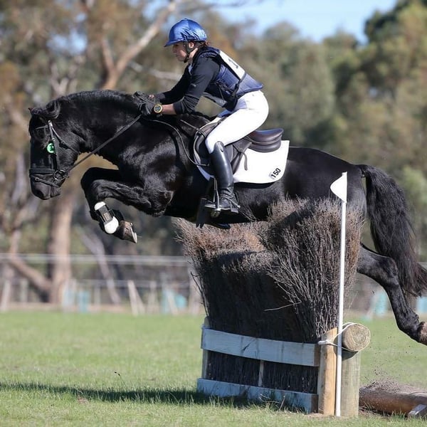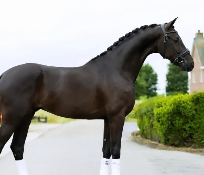Hongre Hanovrien noir ébène d’exception, ce cheval incarne l’élégance, la puissance et la polyvalence au plus haut niveau. Doté d’un modèle harmonieux et d’une excellente conformation, il présente une encolure bien orientée, un dos solide et des membres secs avec des aplombs irréprochables. Sous la selle, il se distingue par un tempérament remarquable : équilibré, généreux et volontaire, il s’adapte aussi bien à des cavaliers expérimentés qu’à des amateurs ambitieux. Son mental stable et sa grande intelligence en font un partenaire fiable, aussi performant en environnement de compétition qu’agréable au quotidien. En saut d’obstacles, il démontre une technique irréprochable, avec un excellent passage de dos, beaucoup de respect des barres et une grande réactivité. Sa force et son amplitude lui permettent d’aborder des parcours techniques avec aisance, tout en conservant régularité et précision. En dressage, il offre trois allures de grande qualité, avec une locomotion expressive, ample et cadencée. Son engagement naturel, sa souplesse et sa capacité à se rassembler en font un cheval prometteur et performant dans le travail sur le plat. Ce hongre est entièrement validé sur le plan vétérinaire : radios impeccables et dossier vétérinaire complet disponibles, attestant de son excellente santé et de son intégrité physique. Polyvalent, sûr et talentueux, il représente une opportunité rare pour tout cavalier recherchant un cheval capable d’évoluer avec succès aussi bien en saut d’obstacles qu’en dressage, tout en offrant confort, sécurité et plaisir au quotidien.