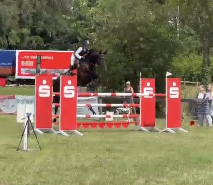 Super lieber und unkomplizierter Wallach der immer alles richtig machen will. Ob im Parcours, im Gelände, Vielseitigkeit oder in der täglichen Dressurarbeit - er gibt immer alles für seinen Reiter und ist ein absoluter Freund. Sowohl von Kindern zu reiten, als auch absolut Leistungsbereit für den ambitionierten Turnierreiter. Bisher 2 Saison Turnier gelaufen und immer zuverlässig abgeliefert, ist er M Springen platziert und verzeiht jegliche Reiterfehler. Geht alleine und in der Gruppe ins Gelände, kennt Box und Offenstall und geht alleine und in der Herde auf die Weide. Bei Fragen bitte per WhatsApp oder telefonisch melden: 016095080190 Probereiten gegen Gebühr von 50€ möglich, wird bei Kauf natürlich verrechnet.